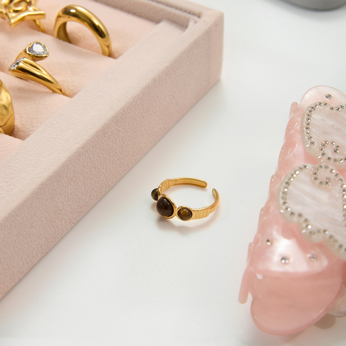 Bague pierre précieuse, Acier inoxydable 304, avec oeil de tigre, Plaqué or 18K, bijoux de mode & styles différents pour le choix & pour femme, Vendu par PC
