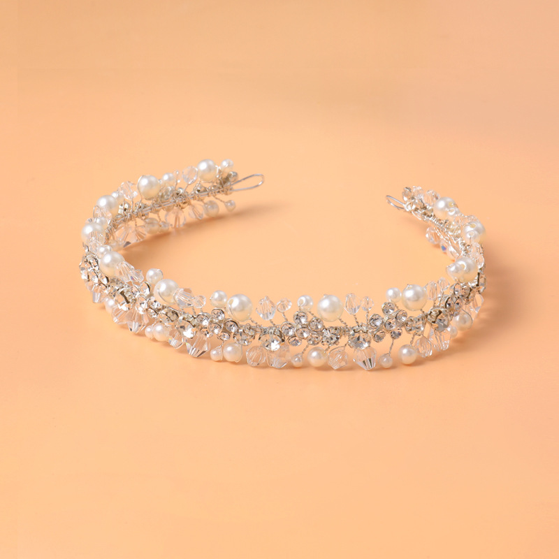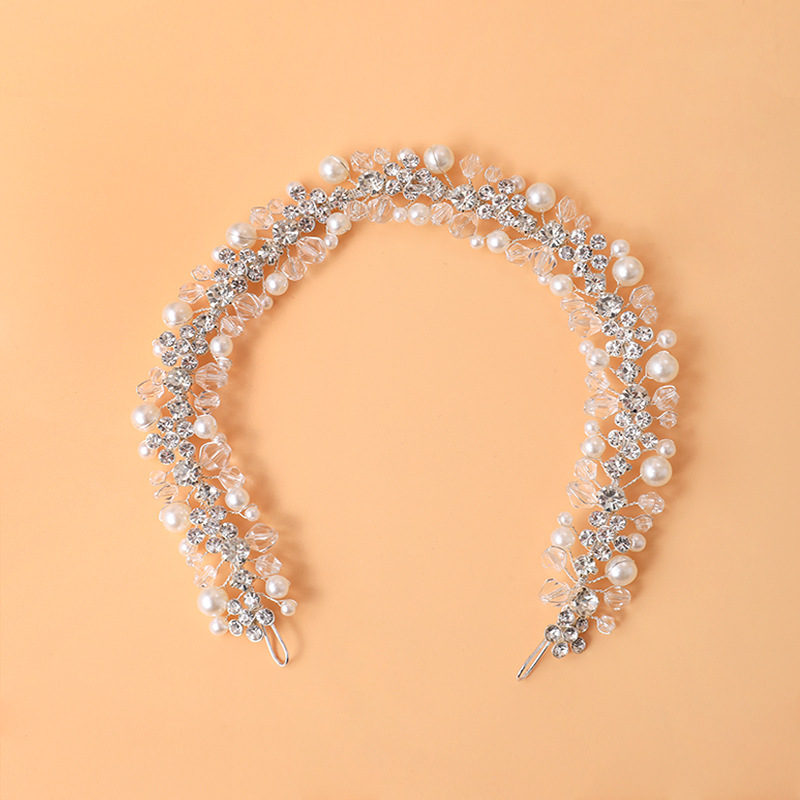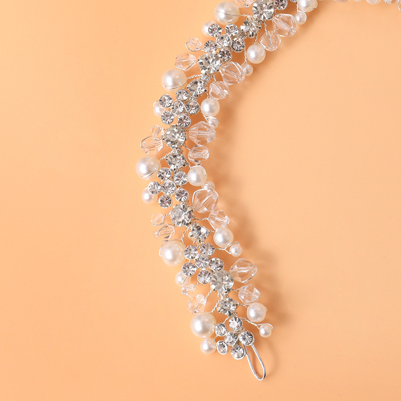 Bandeaux pour les cheveux, alliage de zinc, avec fil en laiton & cristal & perle de plastique, fait à la main, bijoux de mode & pour femme & avec strass, argent, 340x25mm, Vendu par PC