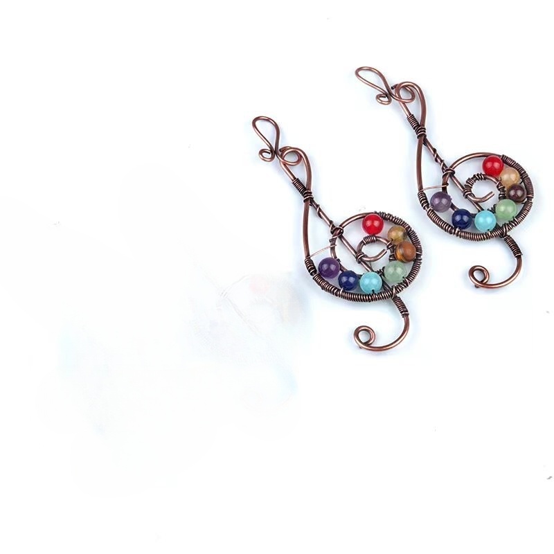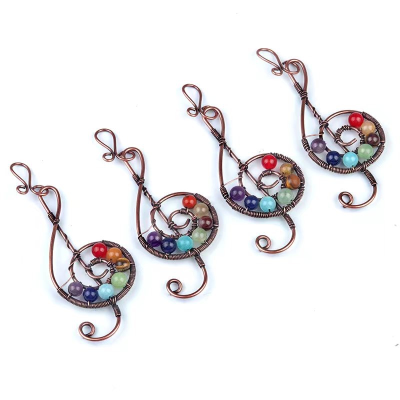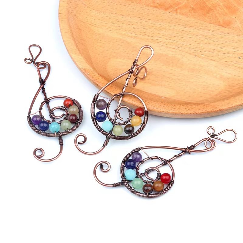 Bijoux Pendentifs en pierres gemmes, Pierre naturelle, avec fer, note de musique, DIY, couleurs mélangées, Vendu par PC
