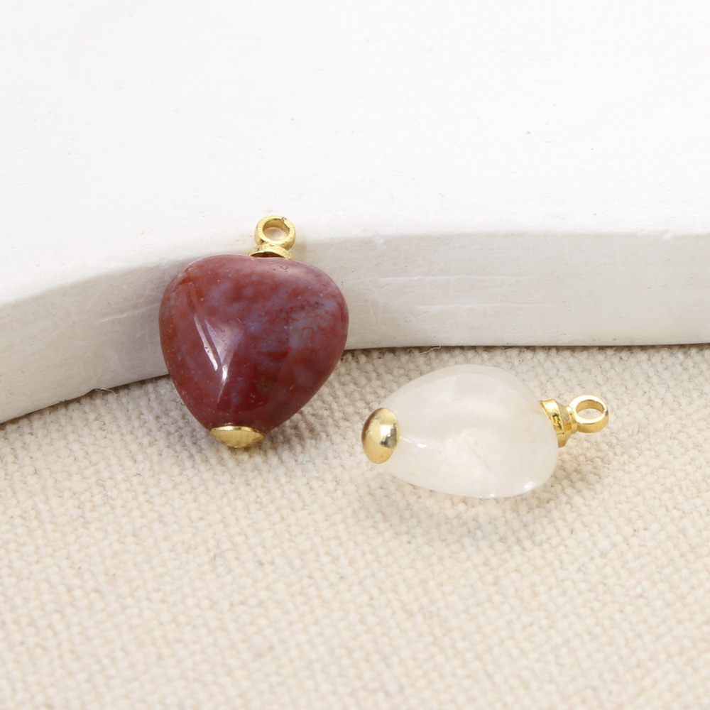 Bijoux Pendentifs en pierres gemmes, Acier inoxydable 304, avec Pierre naturelle, Placage, DIY, plus de couleurs à choisir, 10PC/sac, Vendu par sac