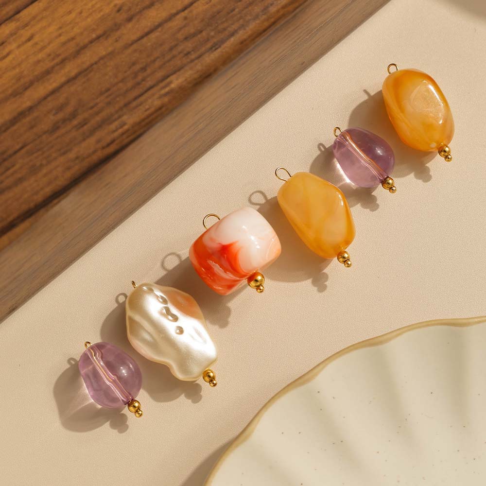 Bijoux Pendentifs en pierres gemmes, Acier inoxydable 304, avec pierre gemme & perle de plastique, Placage de couleur d'or, DIY, plus de couleurs à choisir, 10PC/sac, Vendu par sac