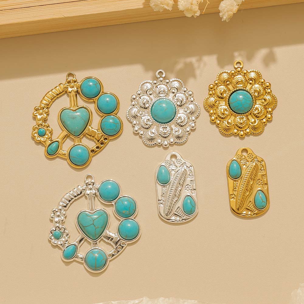 Bijoux Pendentifs en pierres gemmes, Acier inoxydable 304, avec Pierre naturelle, Placage, DIY, plus de couleurs à choisir, 10PC/sac, Vendu par sac