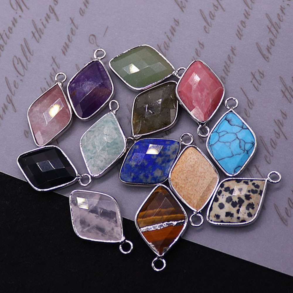 Bijoux Pendentifs en pierres gemmes, pierre gemme, avec laiton, Losange, DIY & différents matériaux pour le choix & facettes, 25x15mm, Vendu par PC