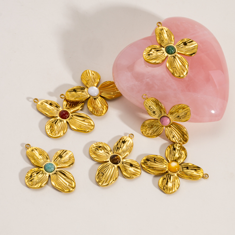 Bijoux Pendentifs en pierres gemmes, Acier inoxydable 304, avec Pierre naturelle & coquille, fleur, Placage, DIY, plus de couleurs à choisir, 10PC/sac, Vendu par sac