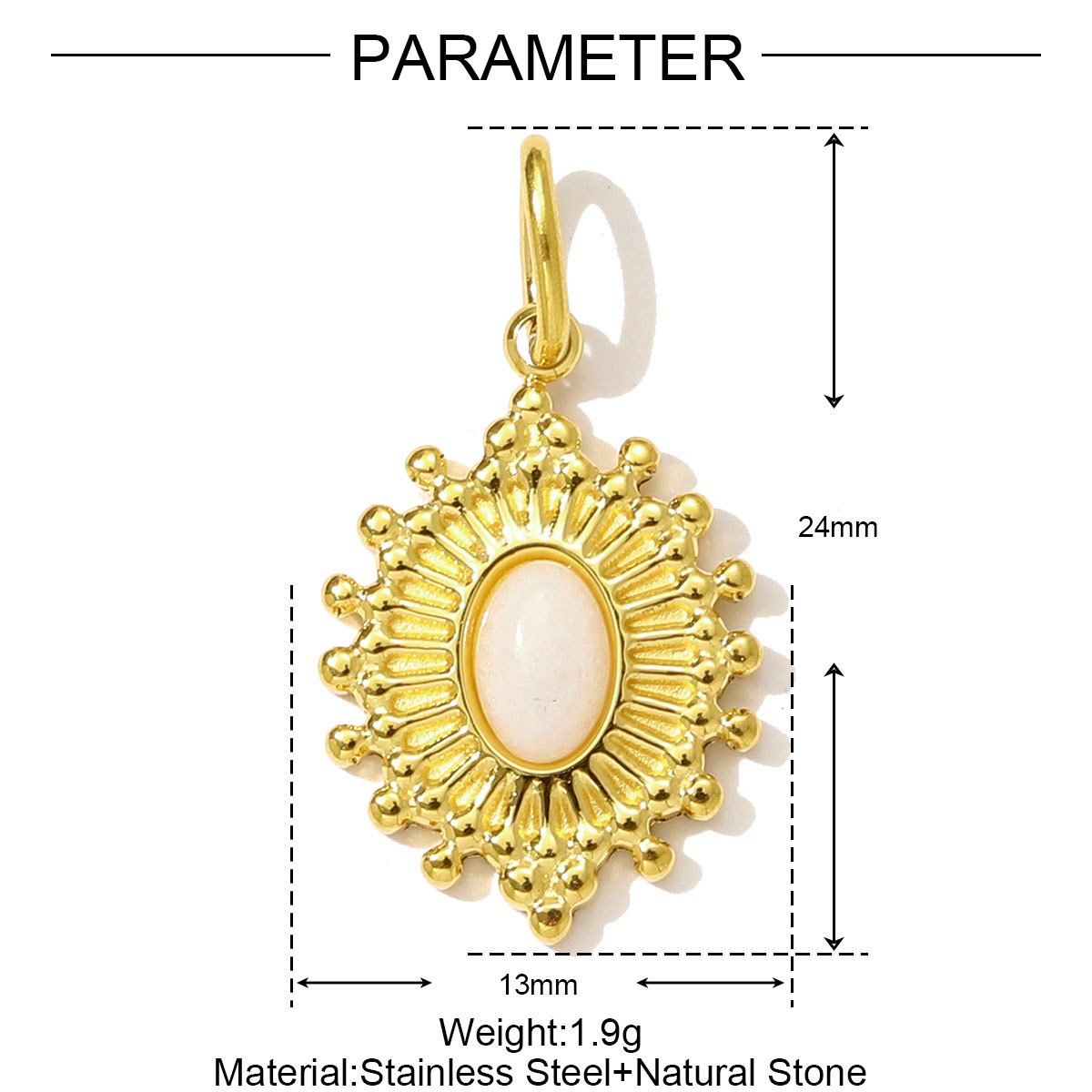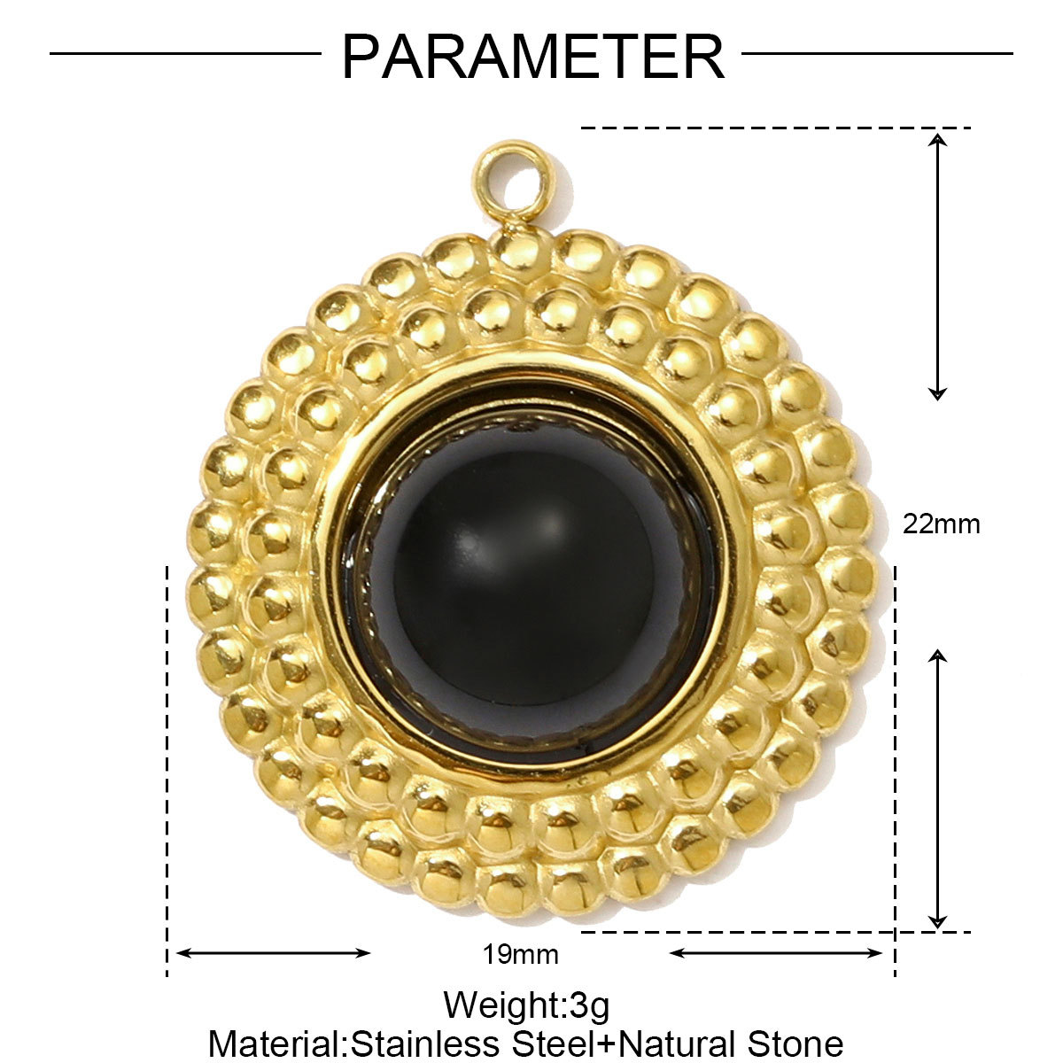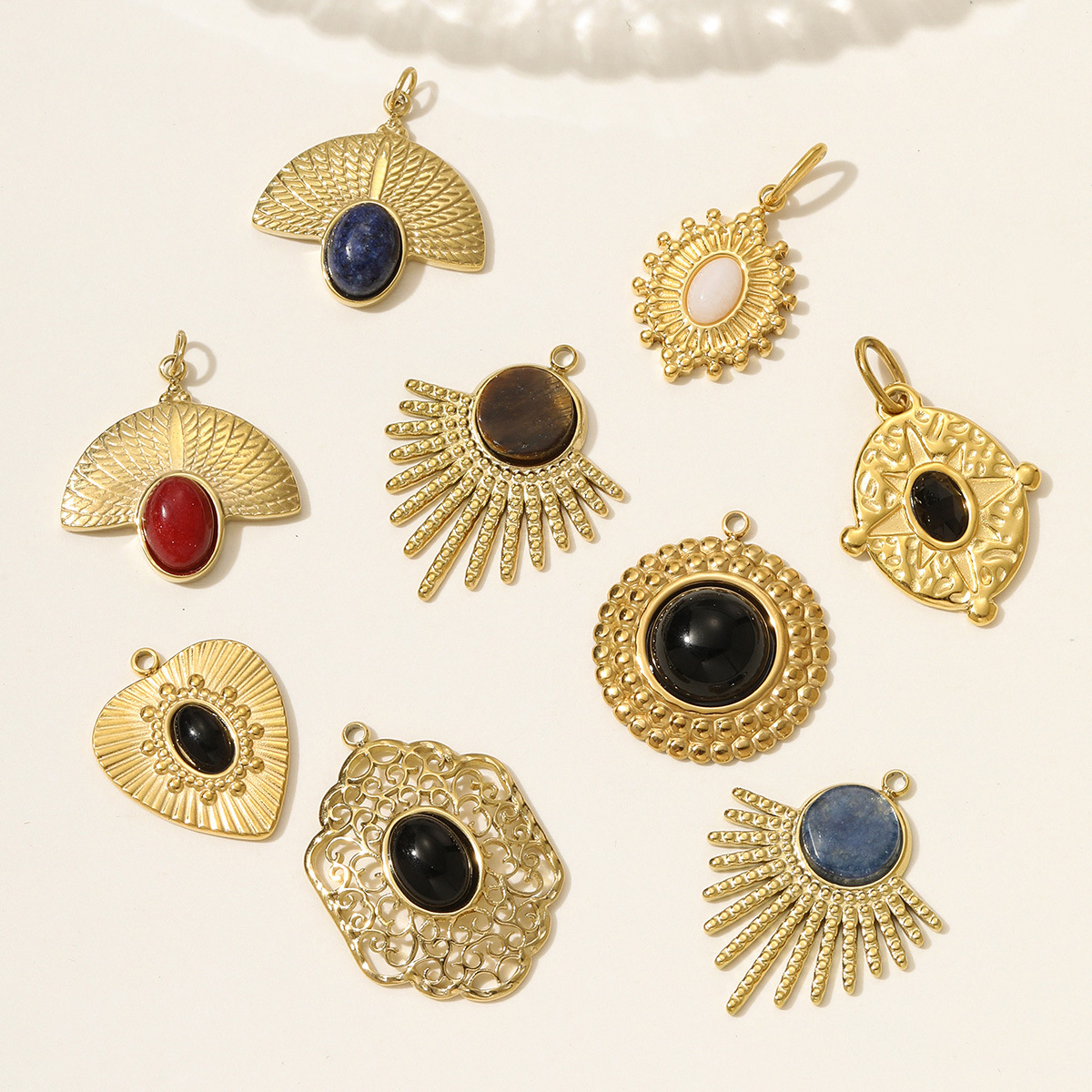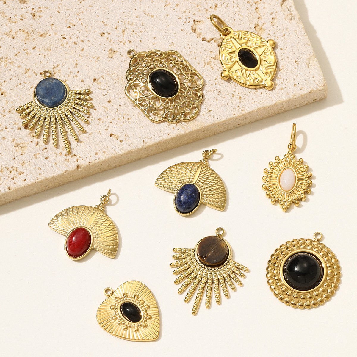 Bijoux Pendentifs en pierres gemmes, Acier inoxydable 304, avec Pierre naturelle, Placage de couleur d'or, DIY, plus de couleurs à choisir, 3PC/sac, Vendu par sac