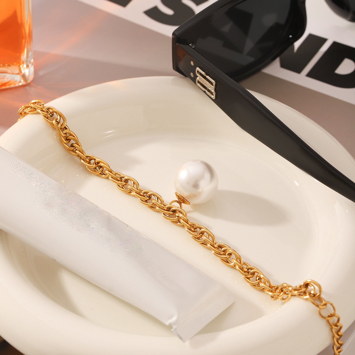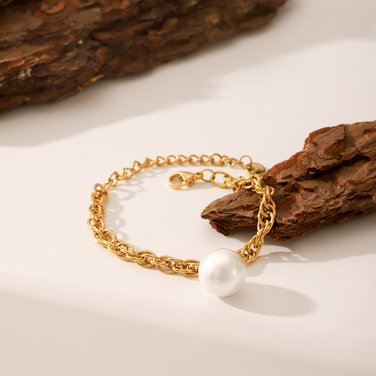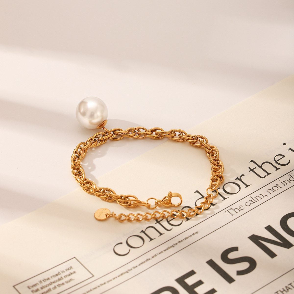 Bijoux bracelet en acier inoxydable, Acier inoxydable 304, avec perle de plastique, avec 5cm chaînes de rallonge, Plaqué or 18K, bijoux de mode & pour femme, Longueur 17 cm, Vendu par PC