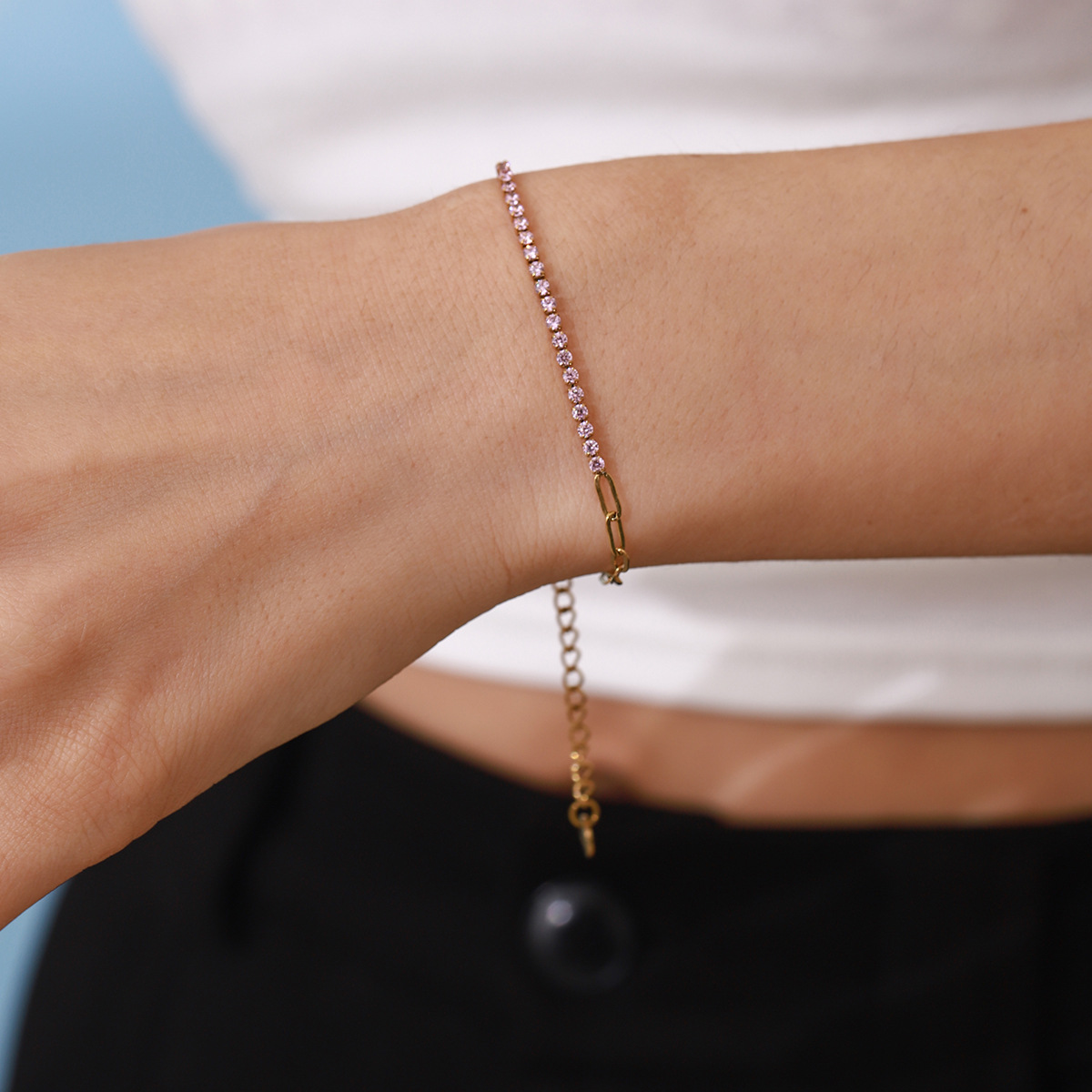 Bijoux bracelet en acier inoxydable, Acier inoxydable 304, Placage, bijoux de mode & pavé de micro zircon, argent, Vendu par PC