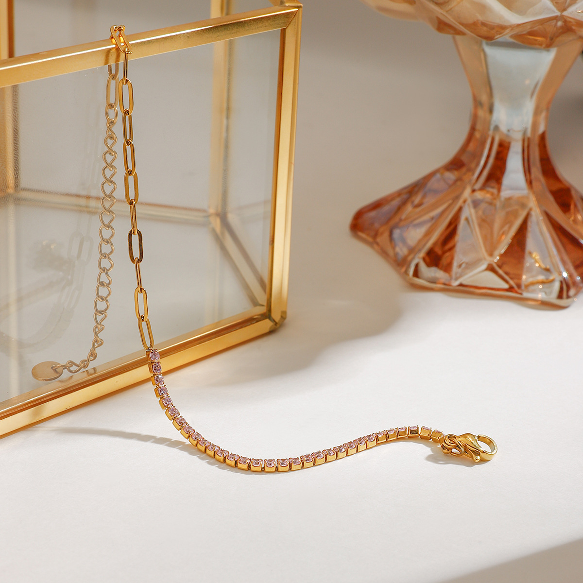 Bijoux bracelet en acier inoxydable, Acier inoxydable 304, Placage de couleur d'or, bijoux de mode & avec strass, doré, Vendu par PC