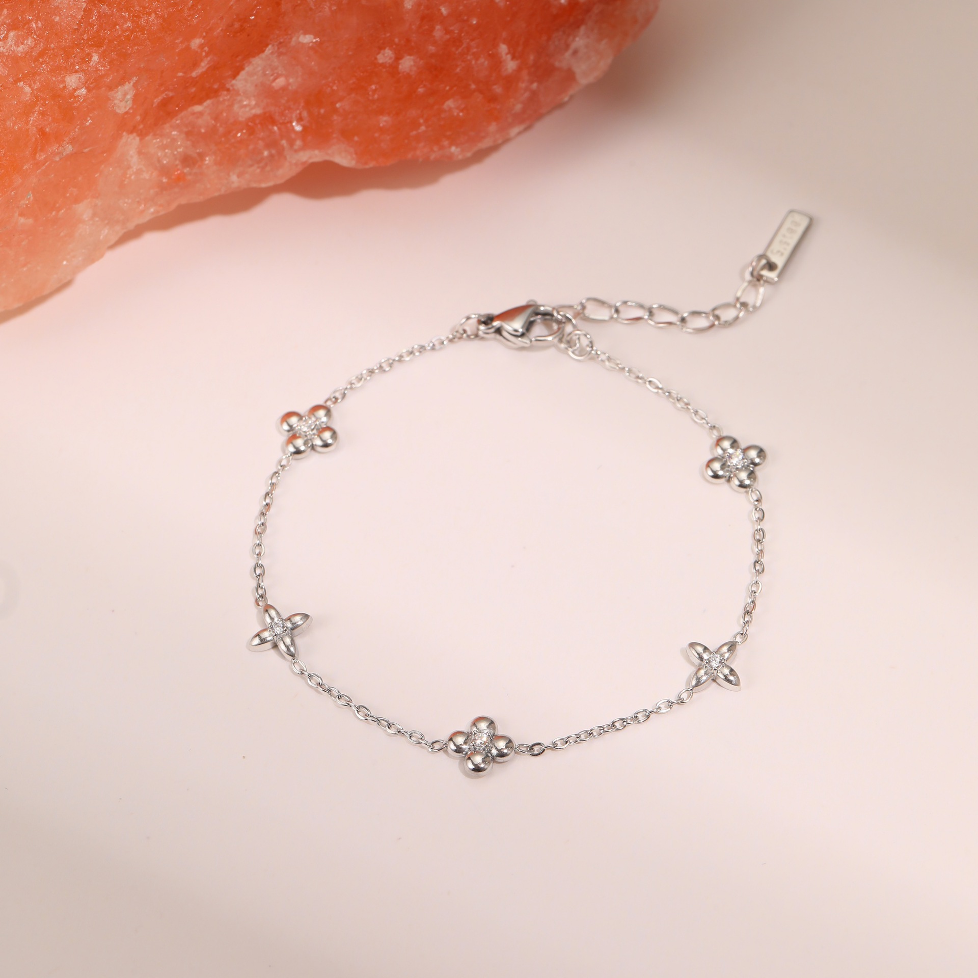 Bijoux bracelet en acier inoxydable, Acier inoxydable 304, Placage, bijoux de mode & pavé de micro zircon, argent, Vendu par PC