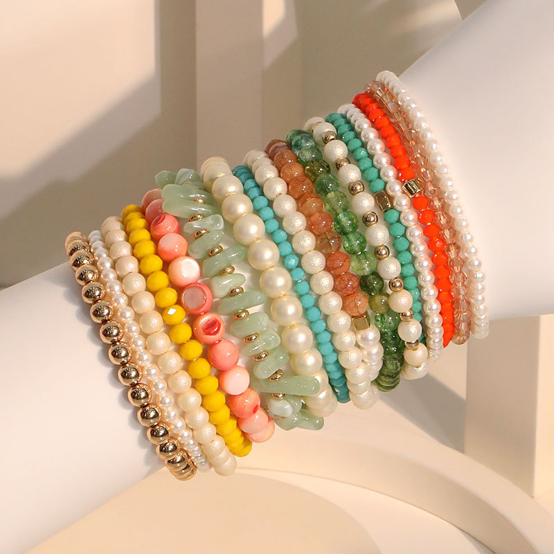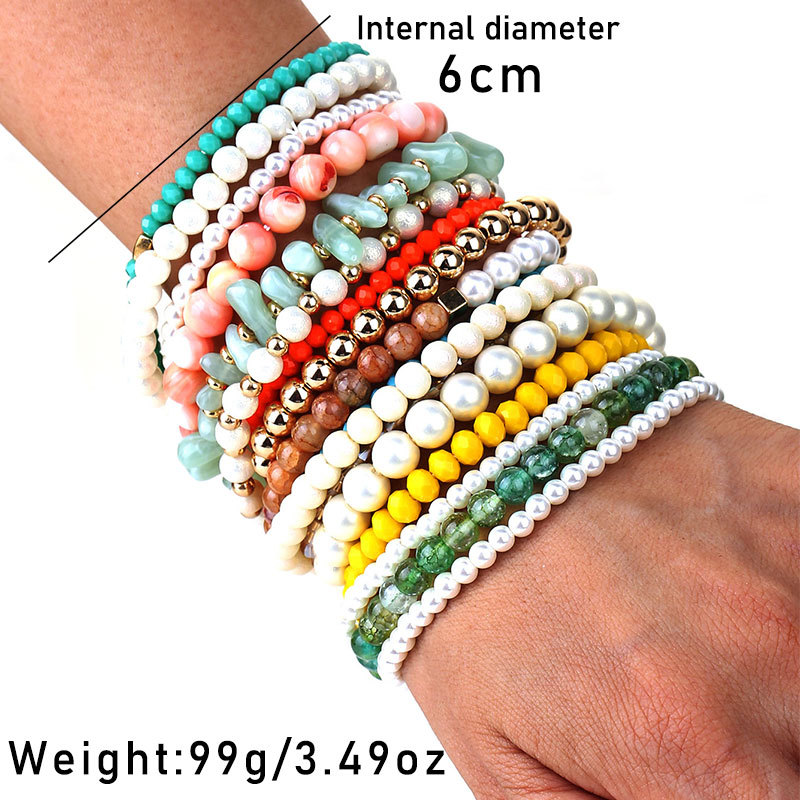 Bijoux bracelets de mode, perle de plastique, avec Pierre naturelle & cristal & résine & plastique revêtu de cuivre, bijoux de mode, plus de couleurs à choisir, 17PC/fixé, Vendu par fixé