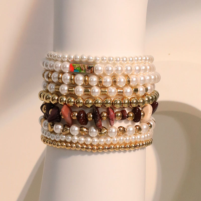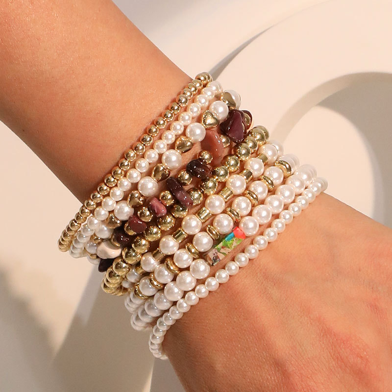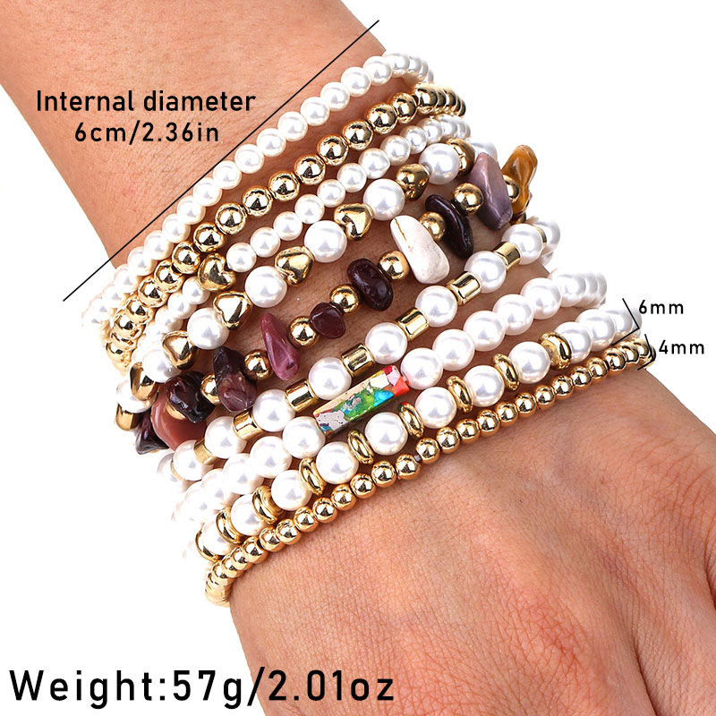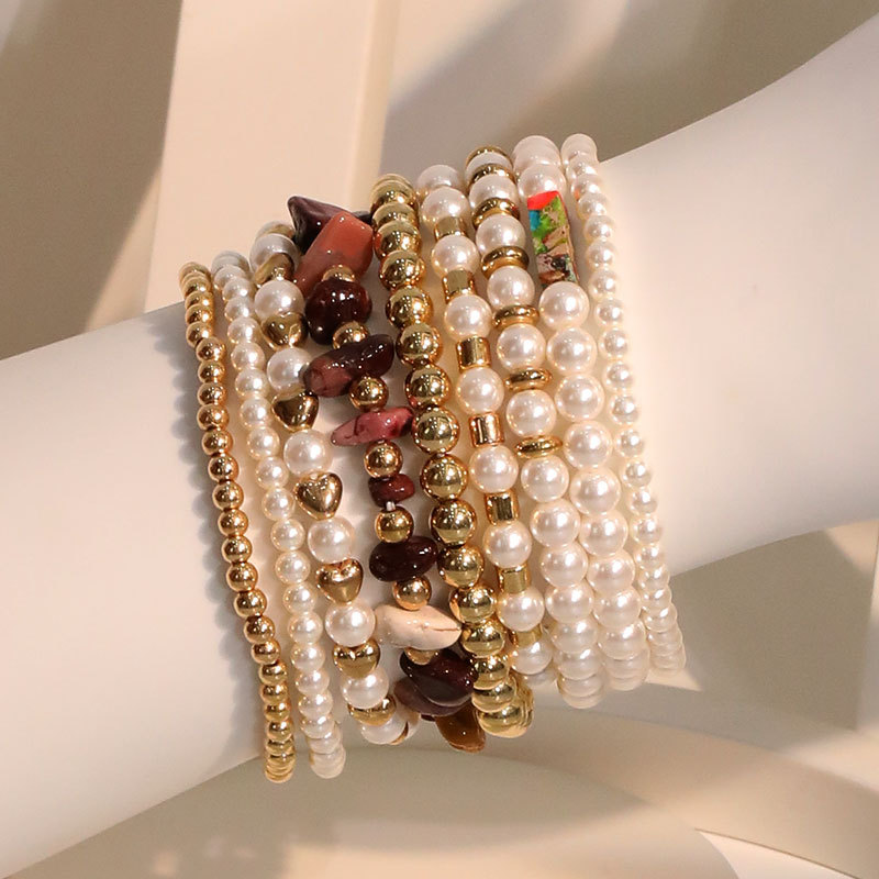 Bijoux bracelets de mode, perle de plastique, avec Pierre naturelle & plastique revêtu de cuivre, bijoux de mode, plus de couleurs à choisir, 9PC/fixé, Vendu par fixé