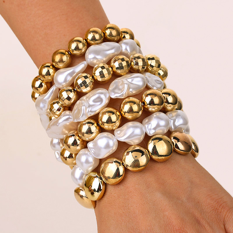Bijoux bracelets de mode, perle de plastique, avec plastique revêtu de cuivre, bijoux de mode, plus de couleurs à choisir, 7PC/fixé, Vendu par fixé