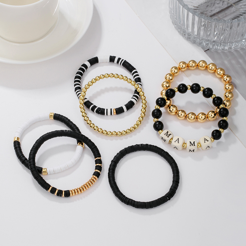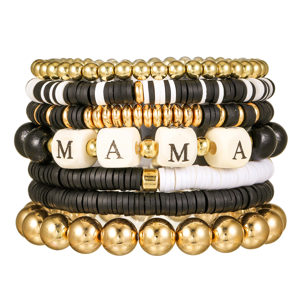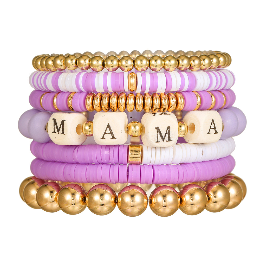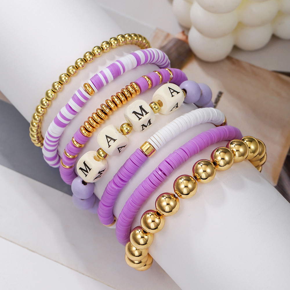Bijoux bracelets de mode, argile de polymère, avec bois & alliage de zinc, Placage de couleur d'or, bijoux de mode, plus de couleurs à choisir, 7PC/fixé, Vendu par fixé
