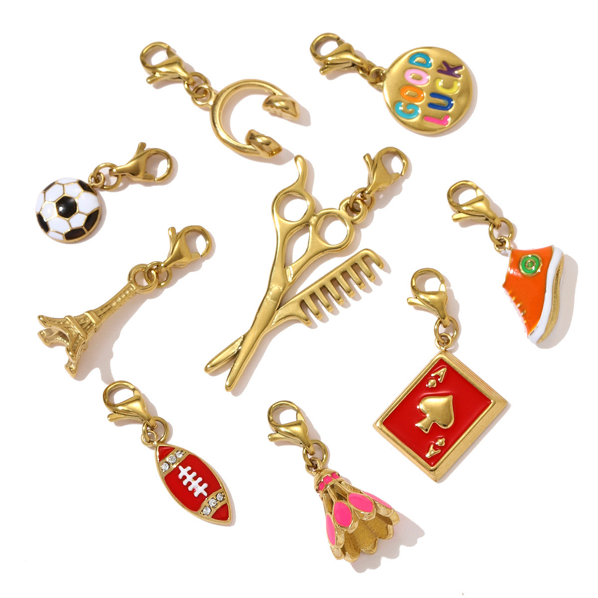 Bijoux pendentifs en acier inoxydable , Acier inoxydable 304, Placage de couleur d'or, DIY & émail & avec strass, plus de couleurs à choisir, 3PC/sac, Vendu par sac