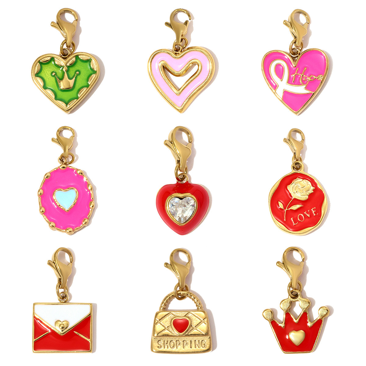 Bijoux pendentifs en acier inoxydable , Acier inoxydable 304, Placage de couleur d'or, DIY & pavé de micro zircon & émail, plus de couleurs à choisir, 13PC/sac, Vendu par sac