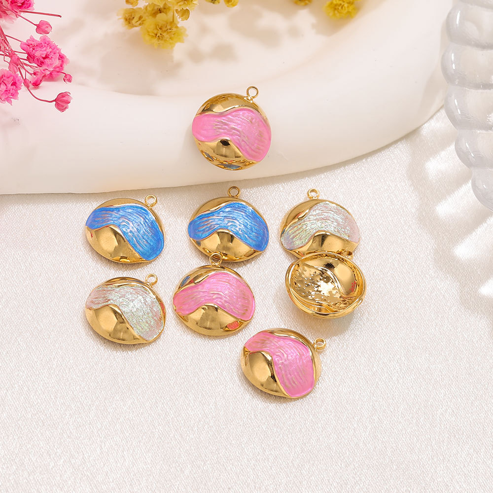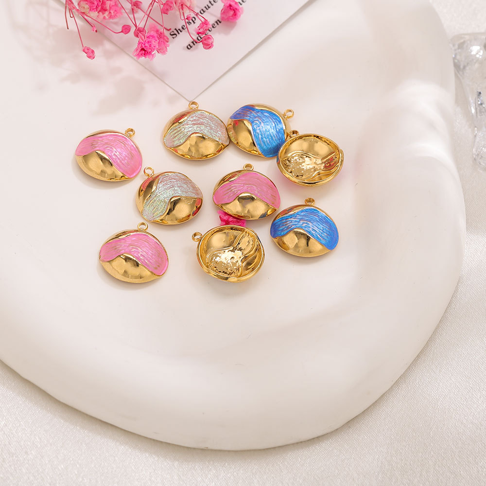 Bijoux pendentifs en acier inoxydable , Acier inoxydable 304, Rond, Placage de couleur d'or, DIY & émail, plus de couleurs à choisir, 15.60x17.50mm, Trou:Environ 1.5mm, Vendu par PC