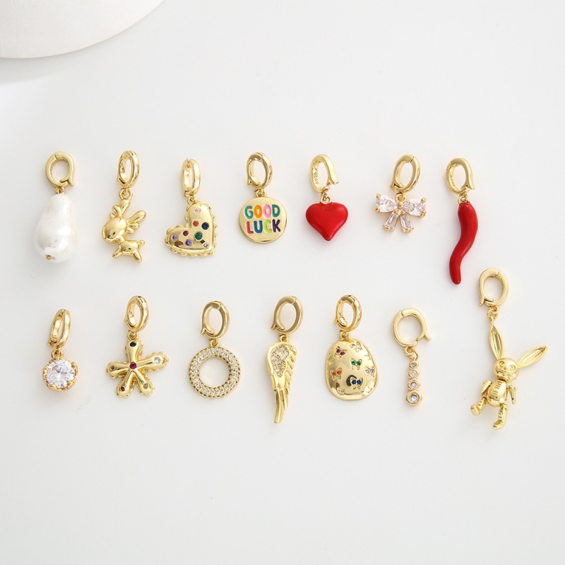 Bijoux pendentifs en laiton, Placage de couleur d'or, envoyé au hasard & DIY & pavé de micro zircon & émail, pendant length 25-50mm, Vendu par PC
