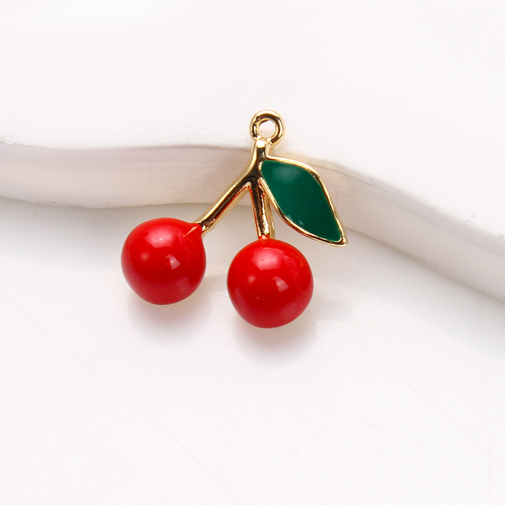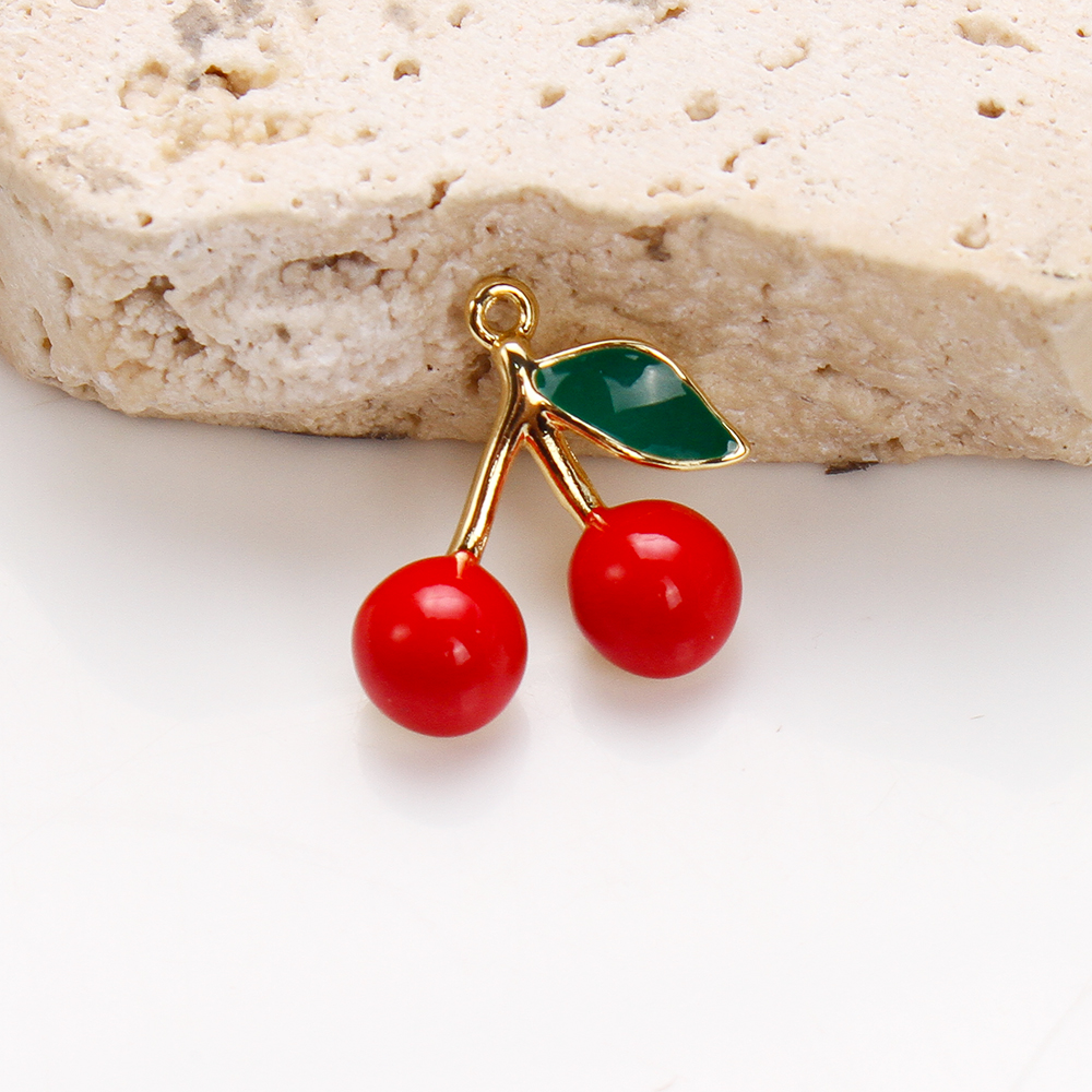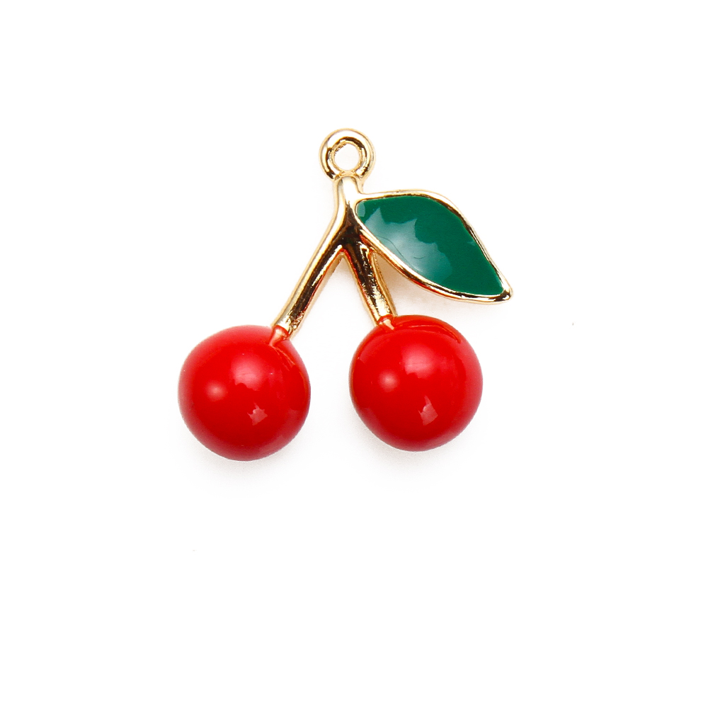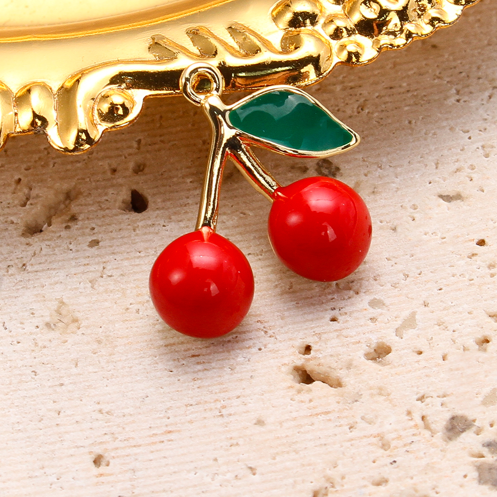 Bijoux pendentifs en laiton, cerise, Placage, DIY & émail, couleurs mélangées, protéger l'environnement, sans nickel, plomb et cadmium, 16.98x5.19x16.10mm, 20PC/sac, Vendu par sac