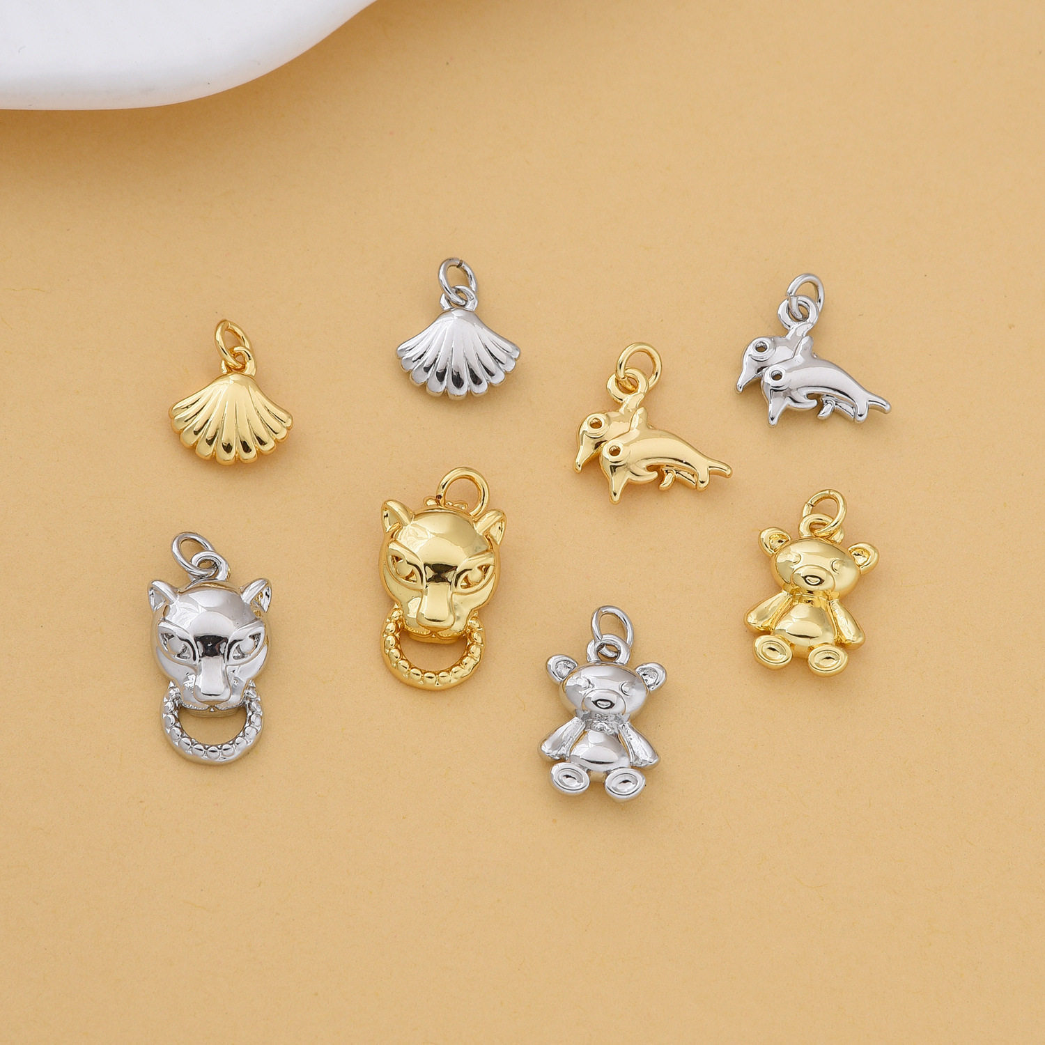 1:Glossy bear pendant (white gold)2:Glossy bear pendant (gold)3:Glossy dolphin pendant (white gold)4:Glossy dolphin pendant (gold)5:Glossy leopard pendant (white gold)6:Glossy leopard pendant (gold)7:Glossy clam shell pendant (white gold)8:Glossy clam shell pendant (gold)