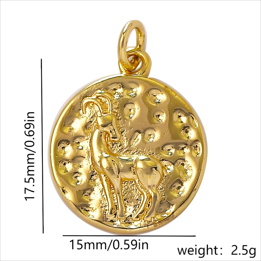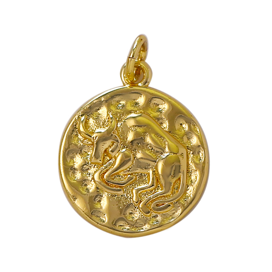 Bijoux pendentifs en laiton, 12 Signes du Zodiaque, Placage de couleur d'or, DIY, doré, protéger l'environnement, sans nickel, plomb et cadmium, Vendu par PC