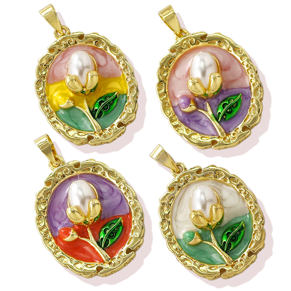 Bijoux pendentifs en laiton, Placage, DIY & pavé de micro zircon & émail, plus de couleurs à choisir, Vendu par PC
