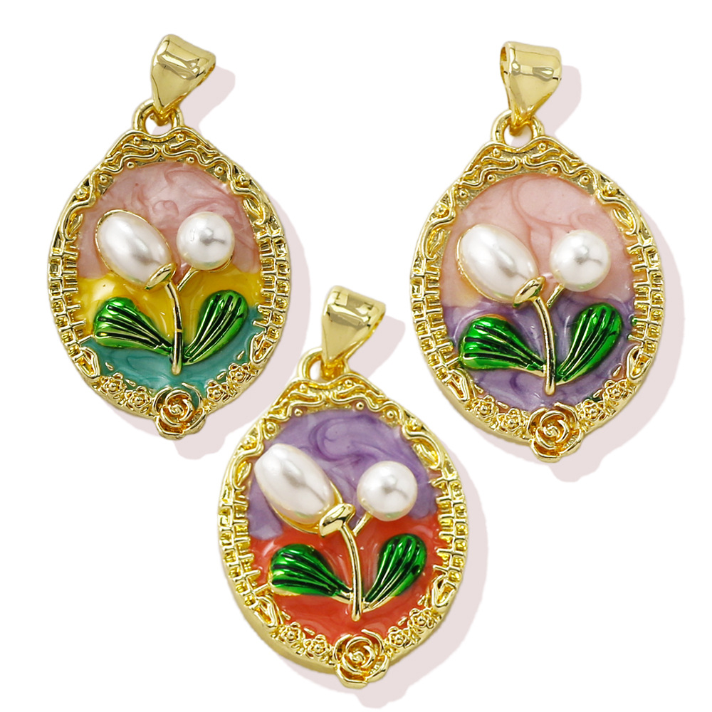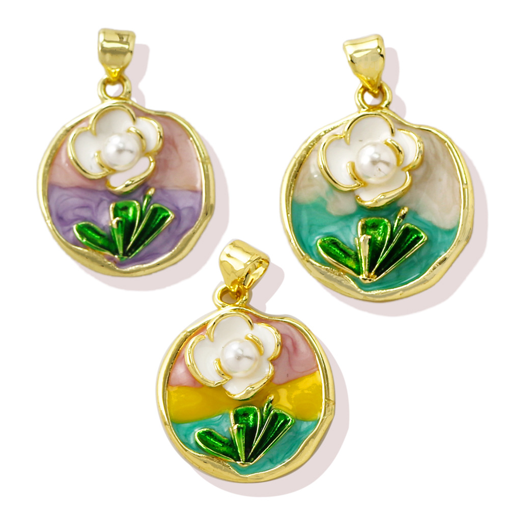 Bijoux pendentifs en laiton, avec perle de plastique, Placage, DIY & émail, plus de couleurs à choisir, Vendu par PC