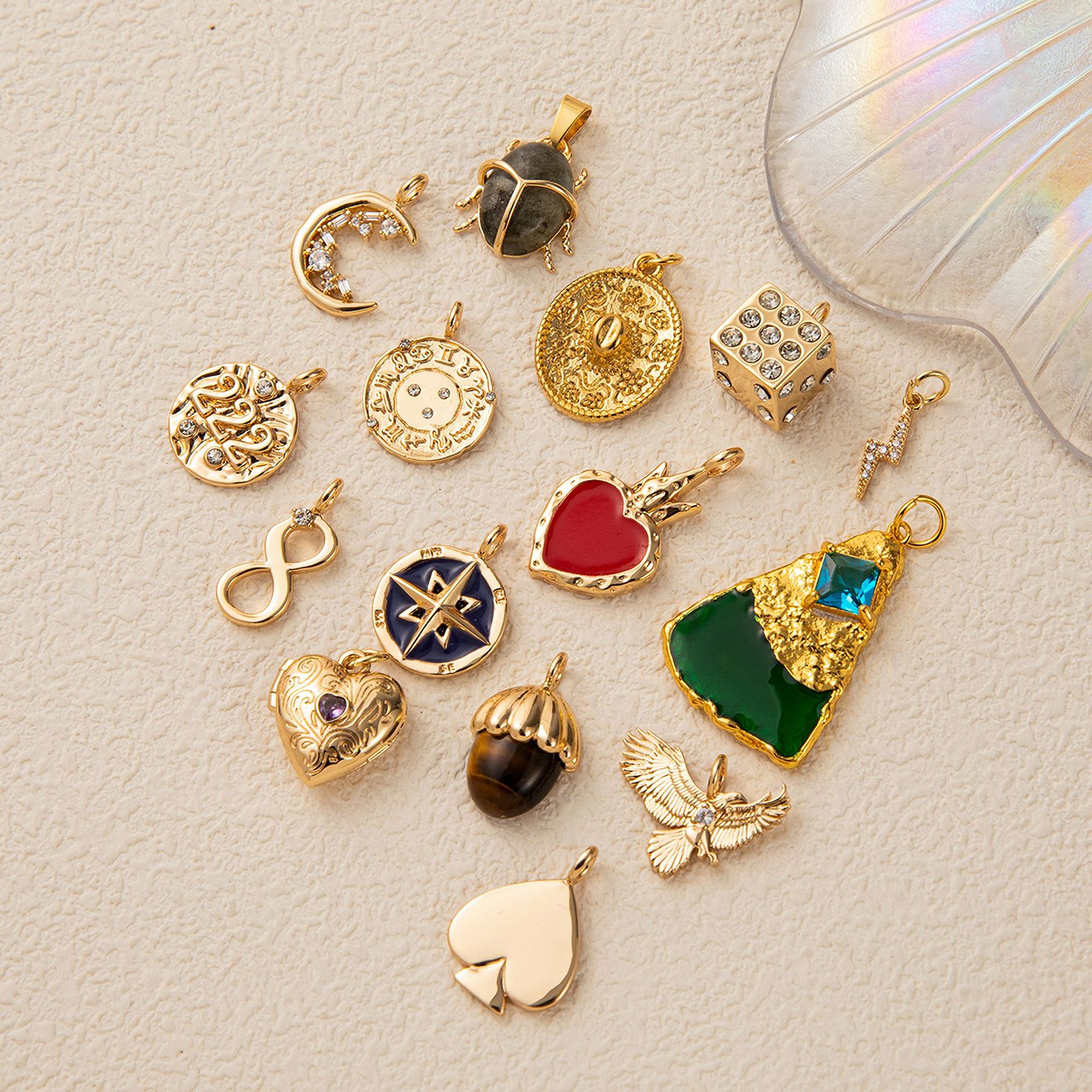 1:Natural stone pendant2:Hazelnut pendant3:Lightning pendant4:Beetle pendant5:Heart pendant6:Sieve pendant7:Moon pendant8:Eagle pendant9:222 pendant10:Love pendant11:Love opening and closing pendant12:Number 8 pendant13:White zirconium constellation pendant14:Eight-pointed star pendant15:Patterned cowboy hat pendant