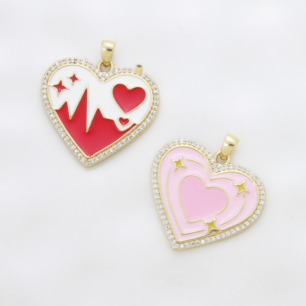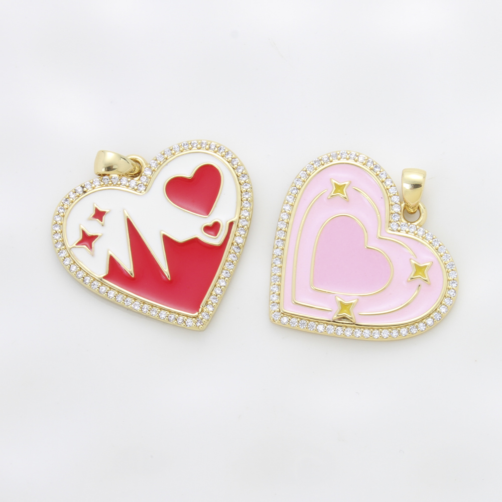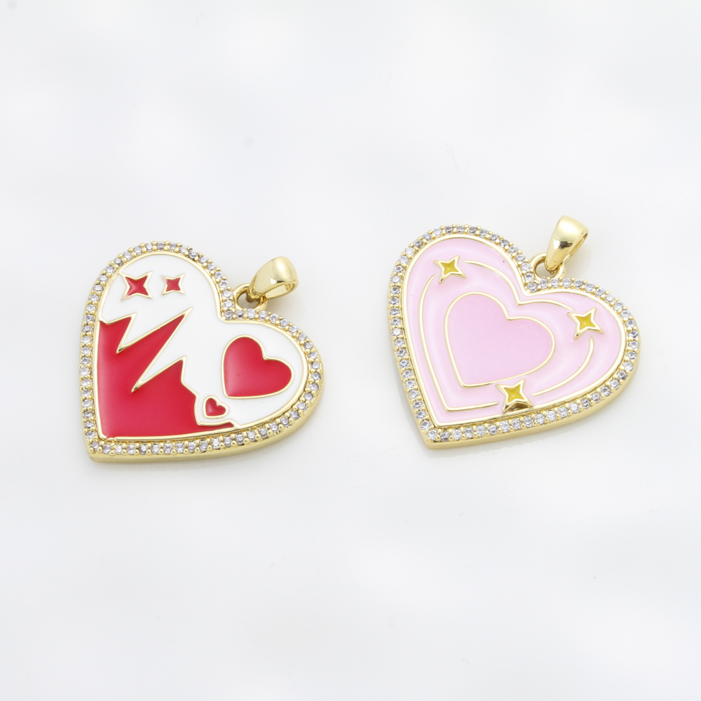 Bijoux pendentifs en laiton, coeur, Placage, DIY & pavé de micro zircon & émail, plus de couleurs à choisir, protéger l'environnement, sans nickel, plomb et cadmium, 22.40x24x1.40mm, Vendu par PC