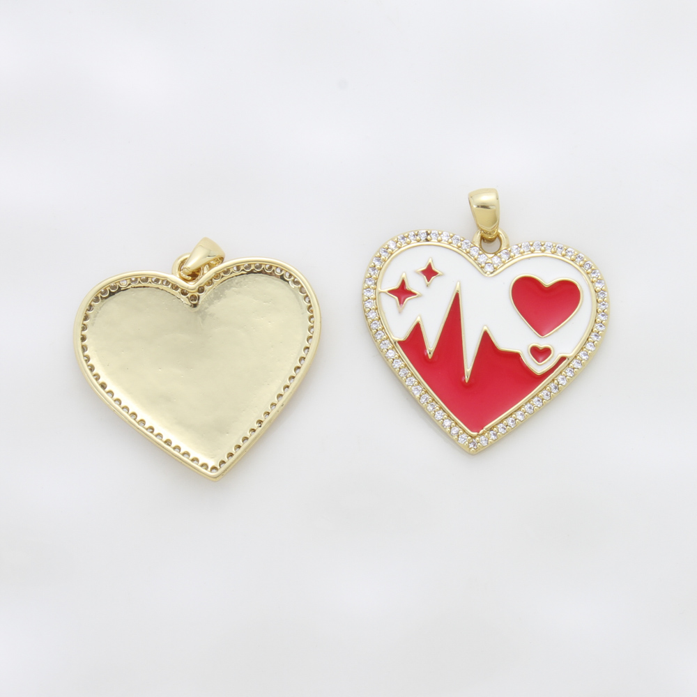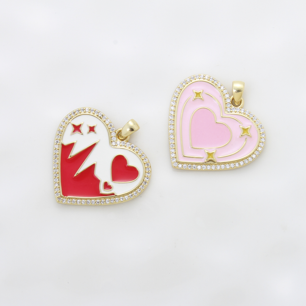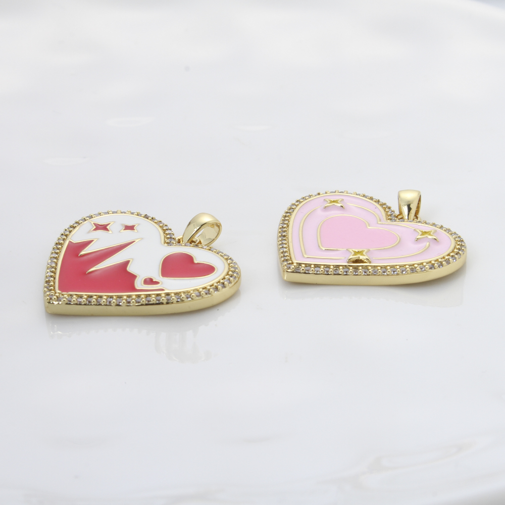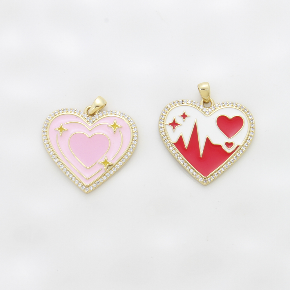 Bijoux pendentifs en laiton, coeur, Placage, DIY & pavé de micro zircon & émail, plus de couleurs à choisir, protéger l'environnement, sans nickel, plomb et cadmium, 22.40x24x1.40mm, Vendu par PC