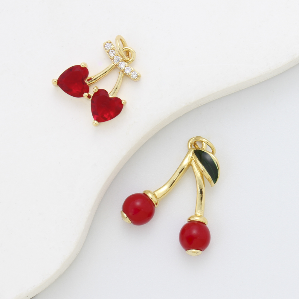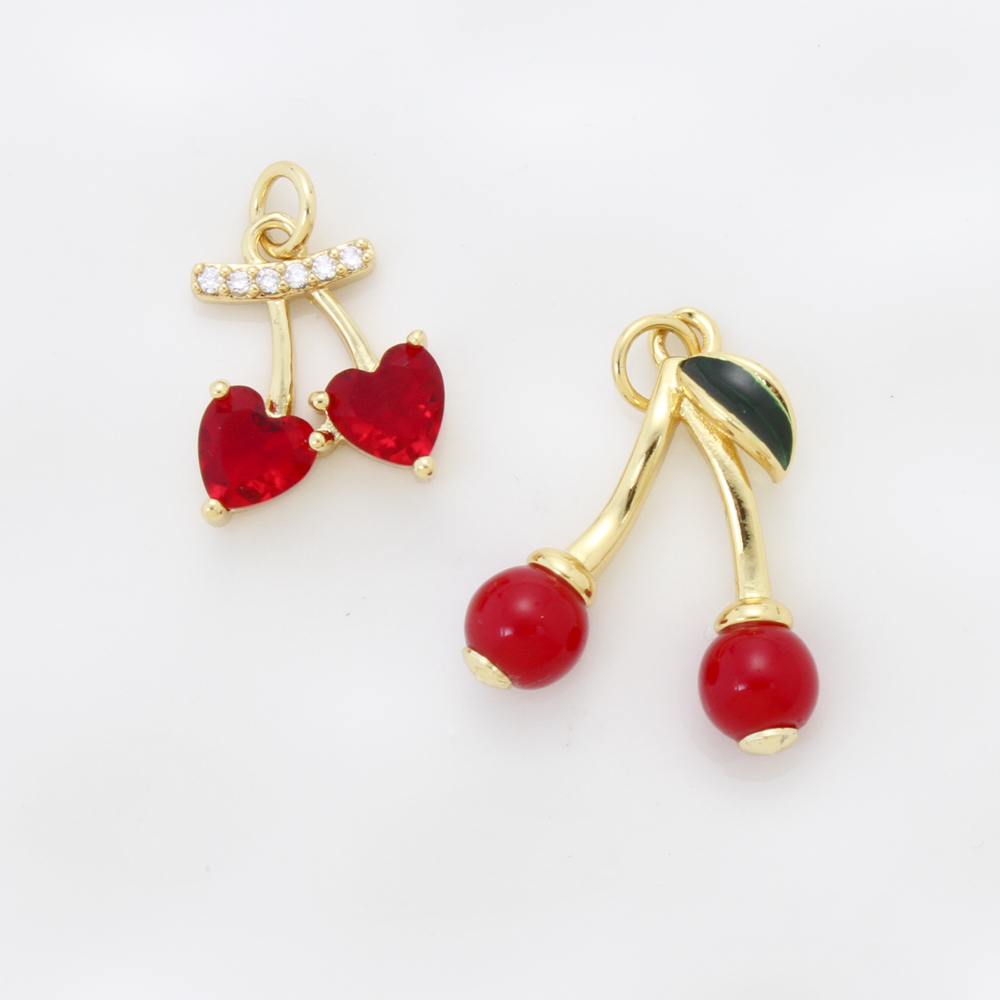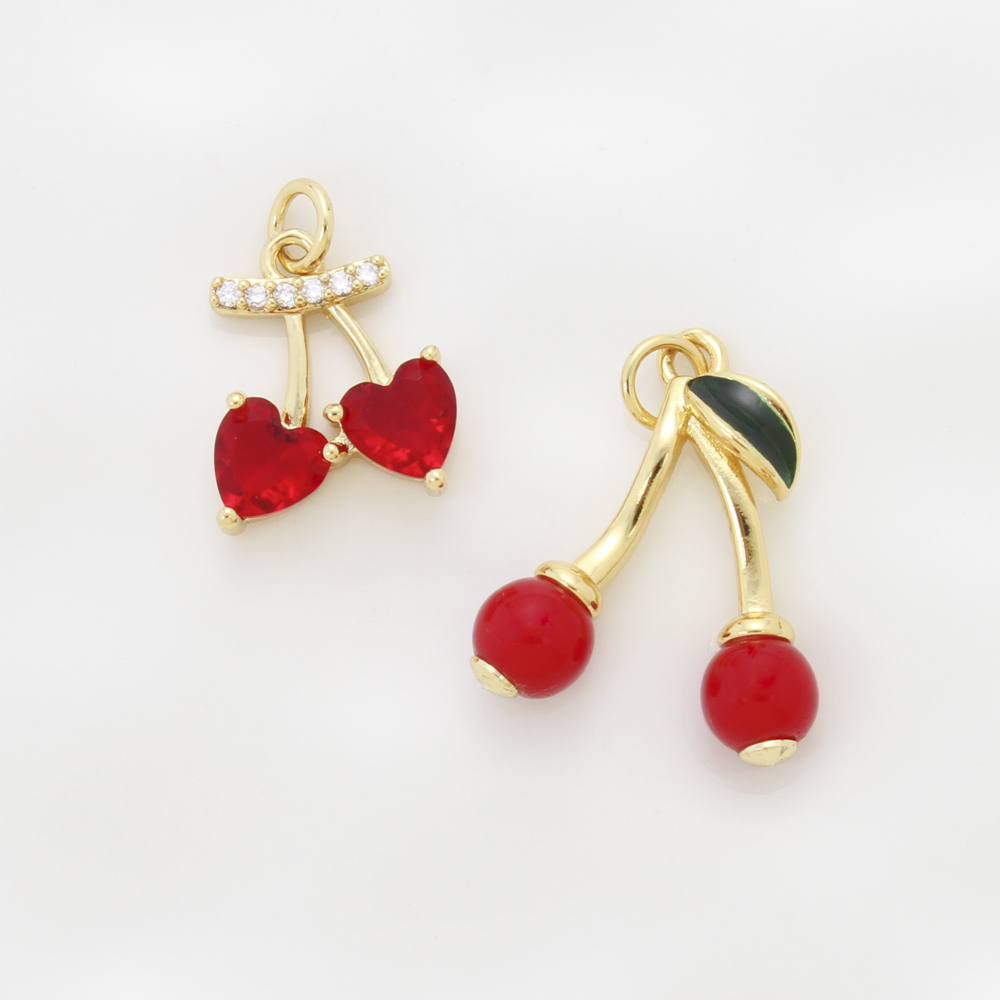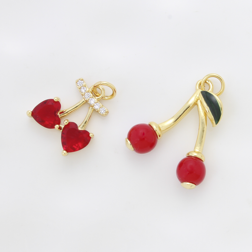 Bijoux pendentifs en laiton, cerise, Placage, DIY & pavé de micro zircon & émail, plus de couleurs à choisir, protéger l'environnement, sans nickel, plomb et cadmium, 21.30x17.80x6mm, Vendu par PC