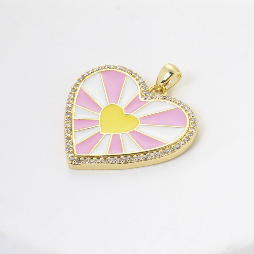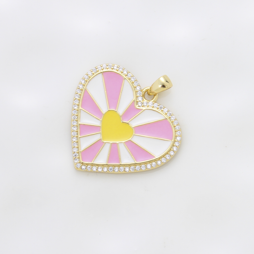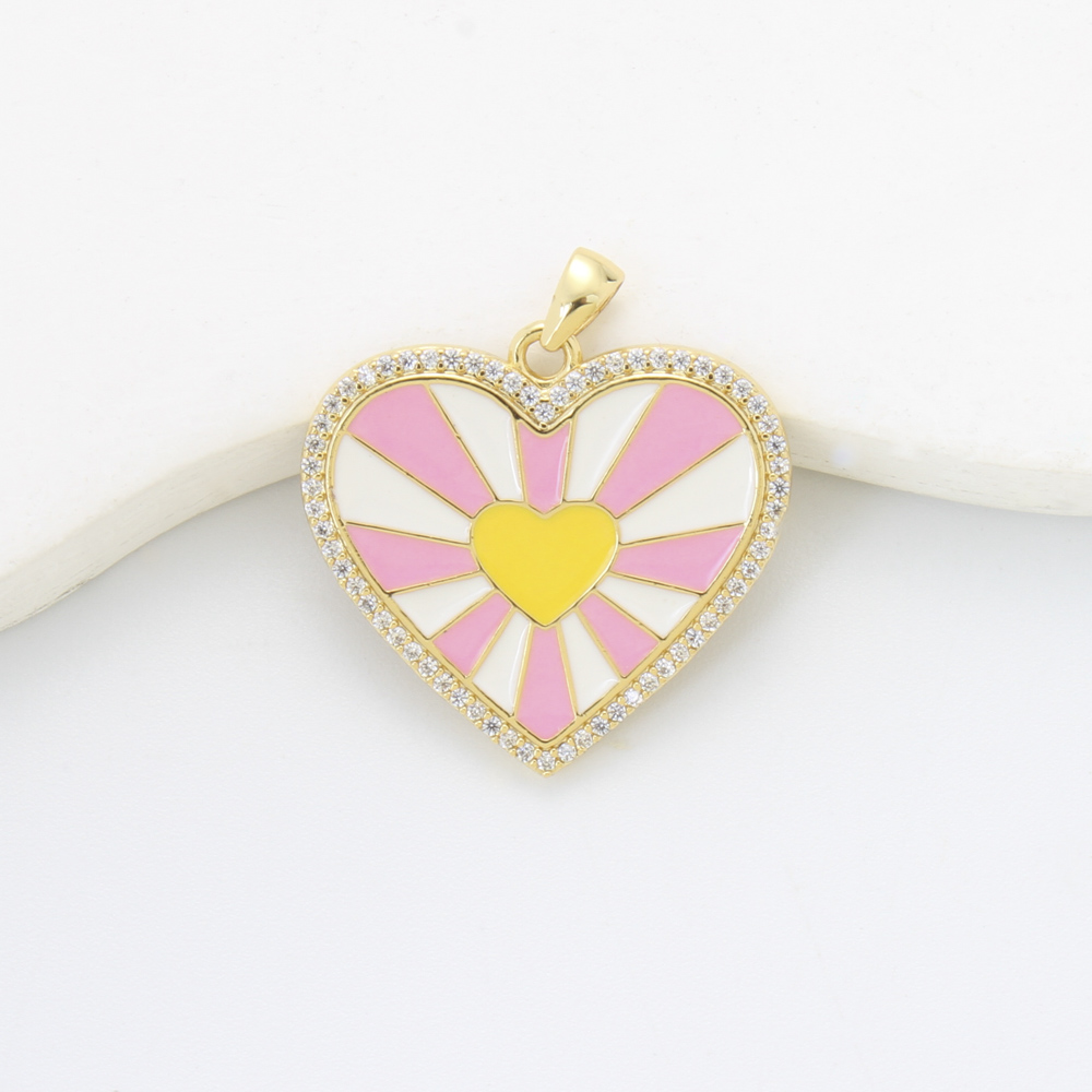 Bijoux pendentifs en laiton, coeur, Placage, DIY & pavé de micro zircon & émail, plus de couleurs à choisir, protéger l'environnement, sans nickel, plomb et cadmium, 23x24.40x2mm, Vendu par PC