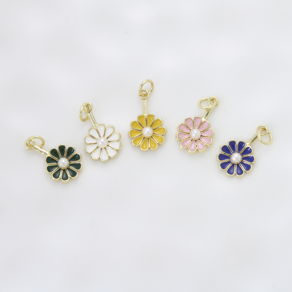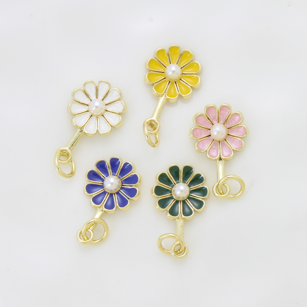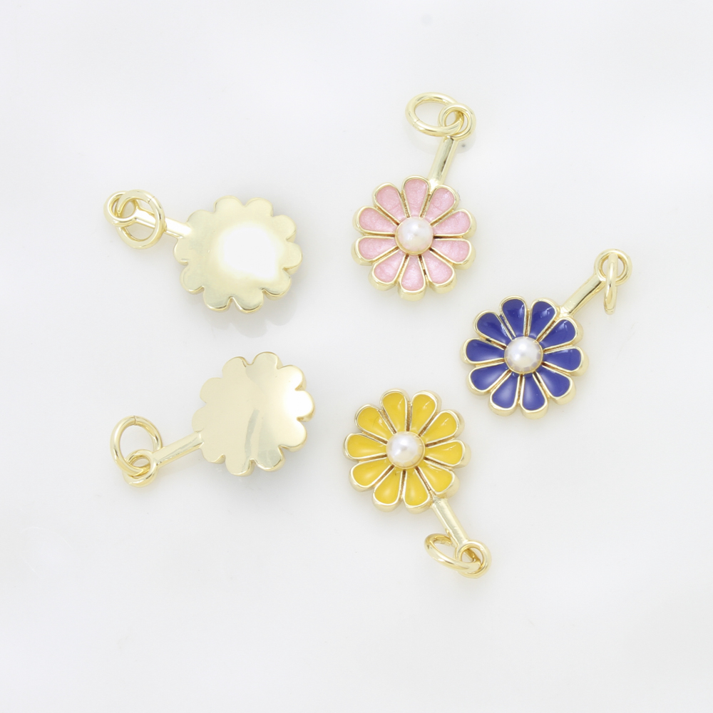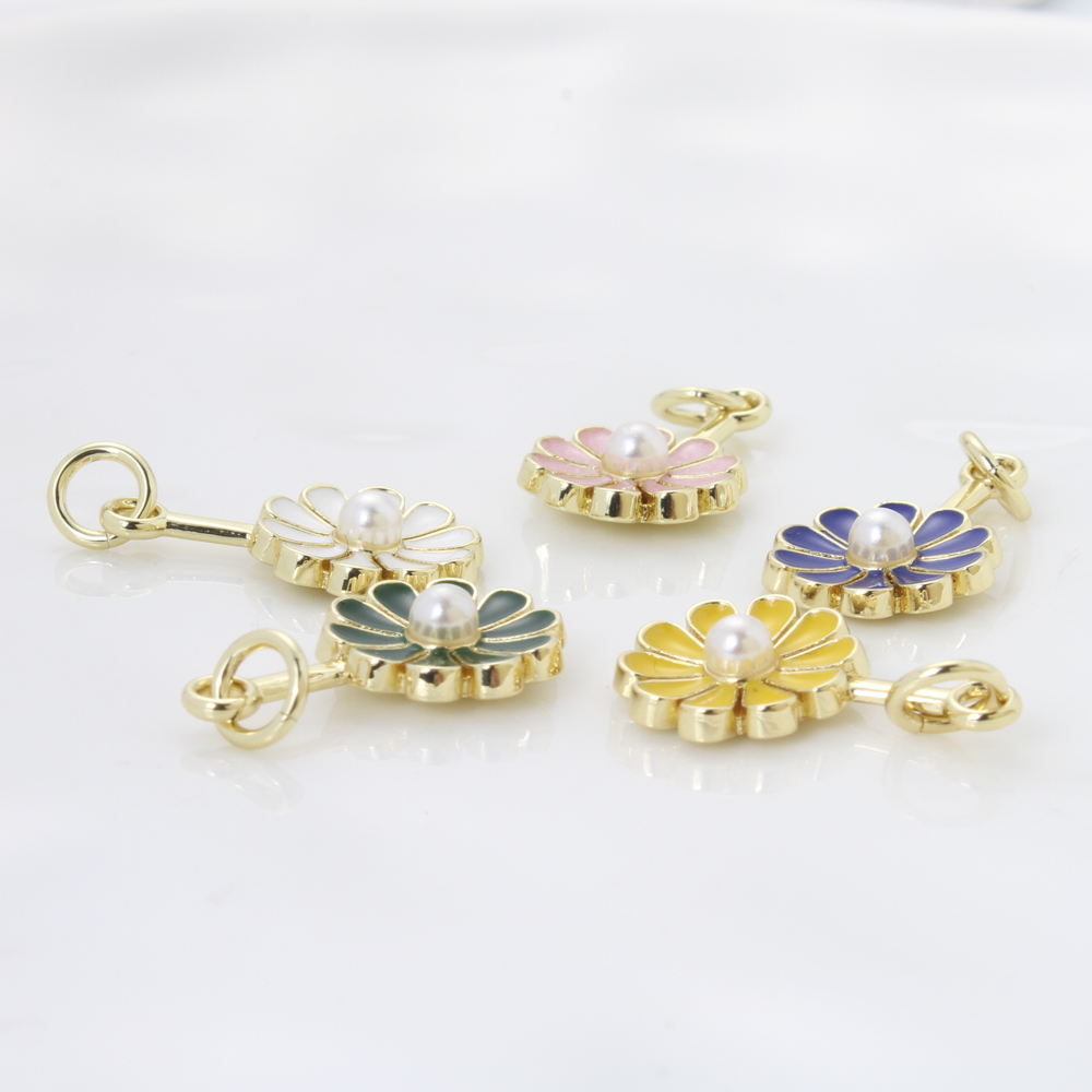 Bijoux pendentifs en laiton, avec perle de plastique, fleur, Placage, DIY & émail, plus de couleurs à choisir, protéger l'environnement, sans nickel, plomb et cadmium, 17x10.50x3.70mm, Vendu par PC
