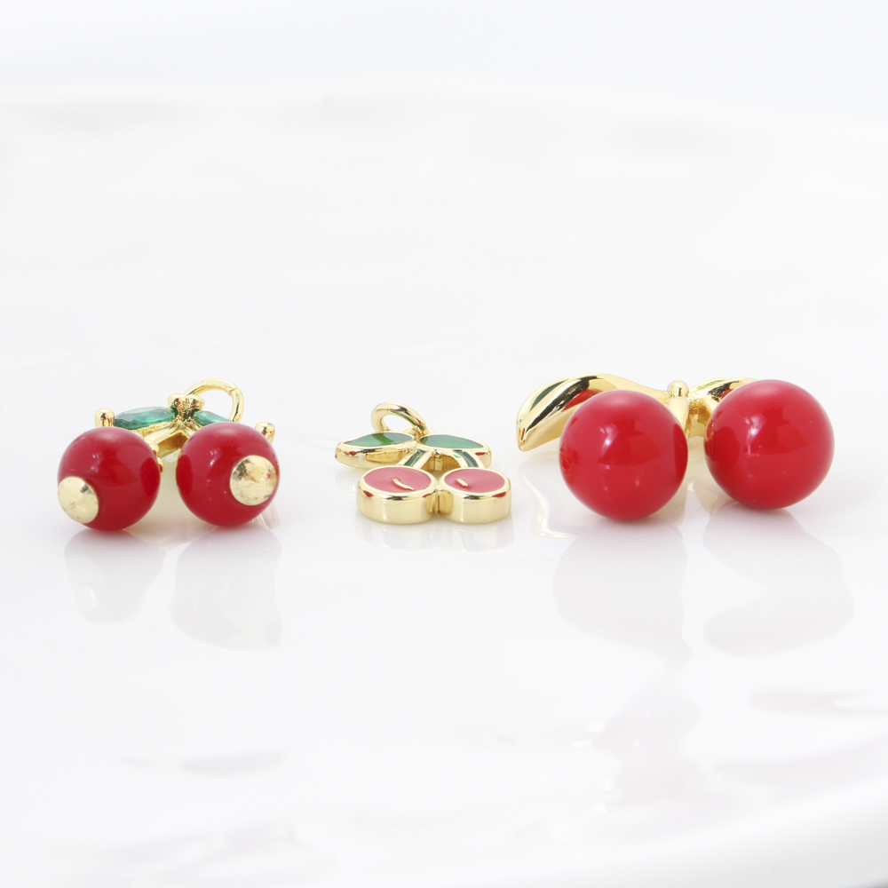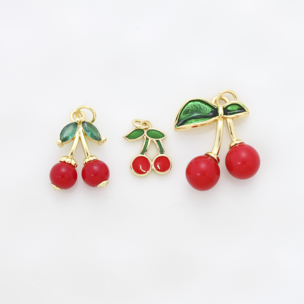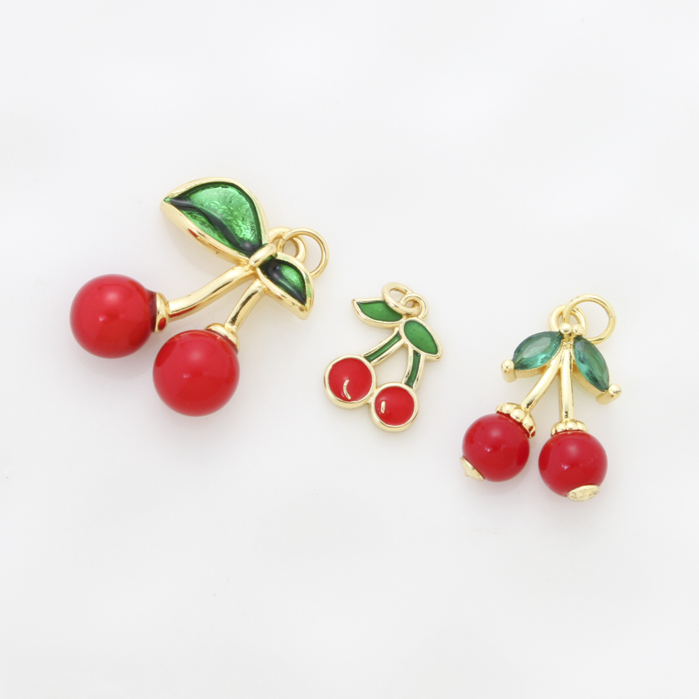 Bijoux pendentifs en laiton, cerise, Placage, DIY & pavé de micro zircon & émail, plus de couleurs à choisir, protéger l'environnement, sans nickel, plomb et cadmium, 21.10x17.70x8mm, Vendu par PC
