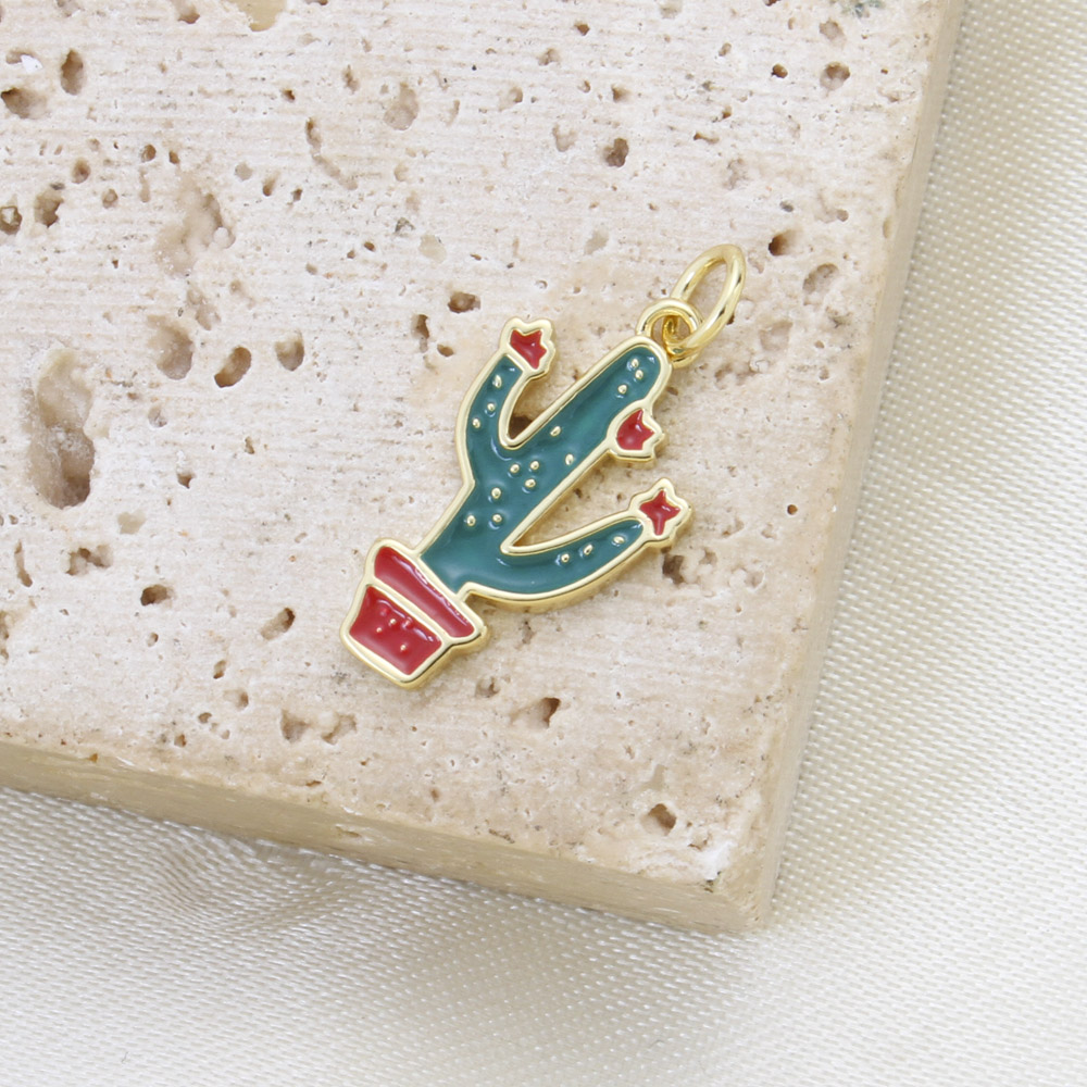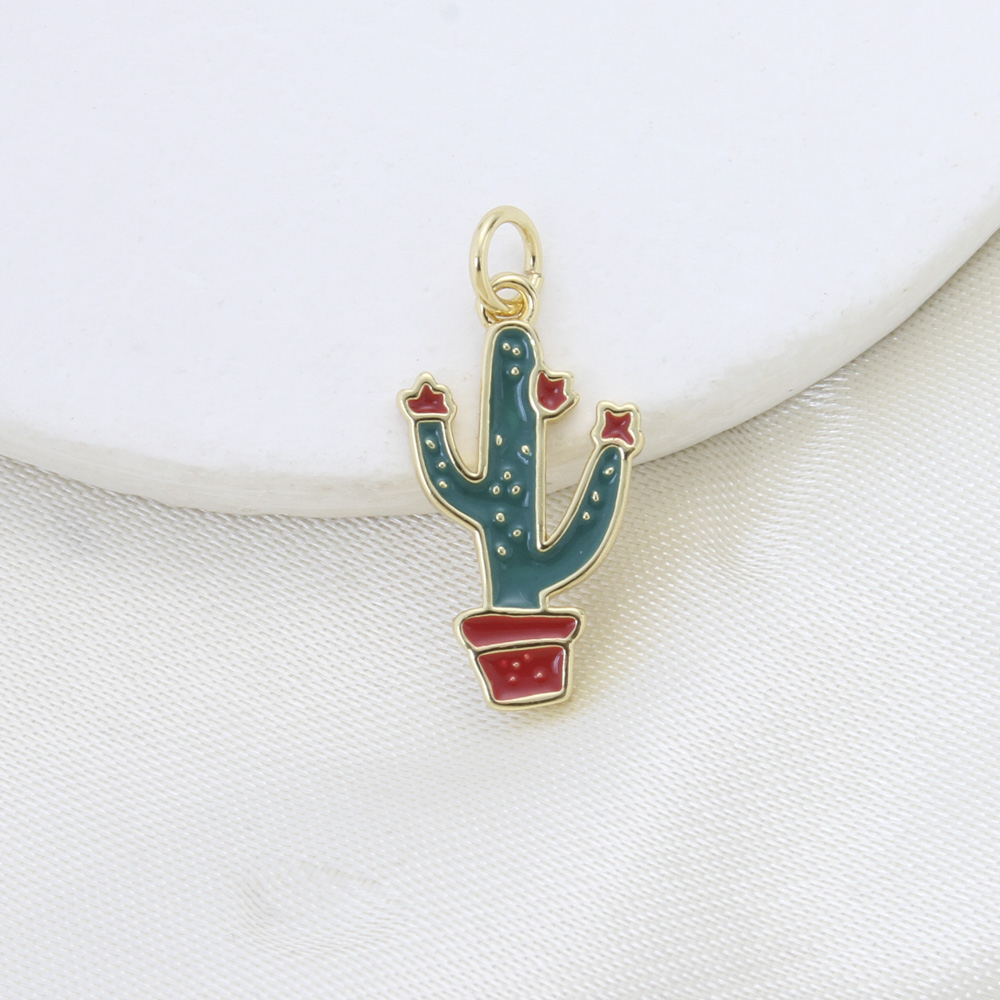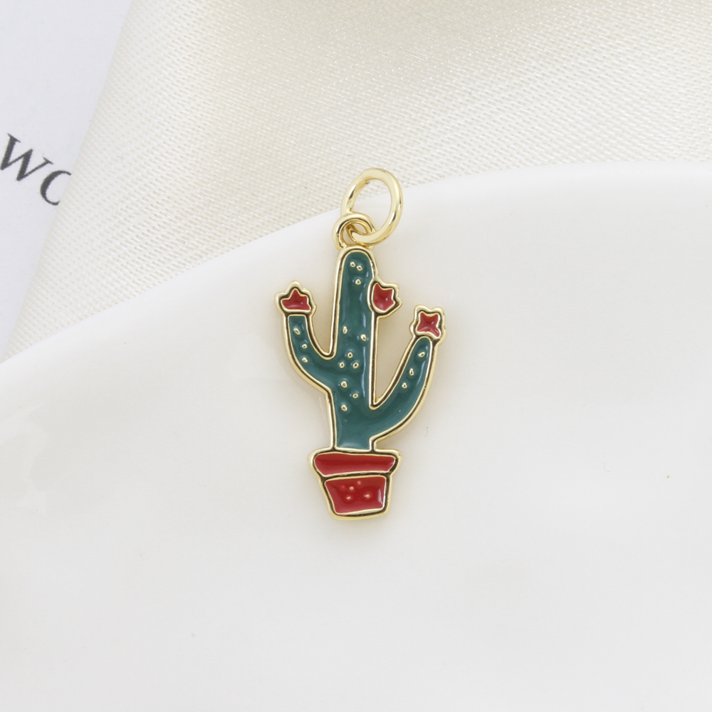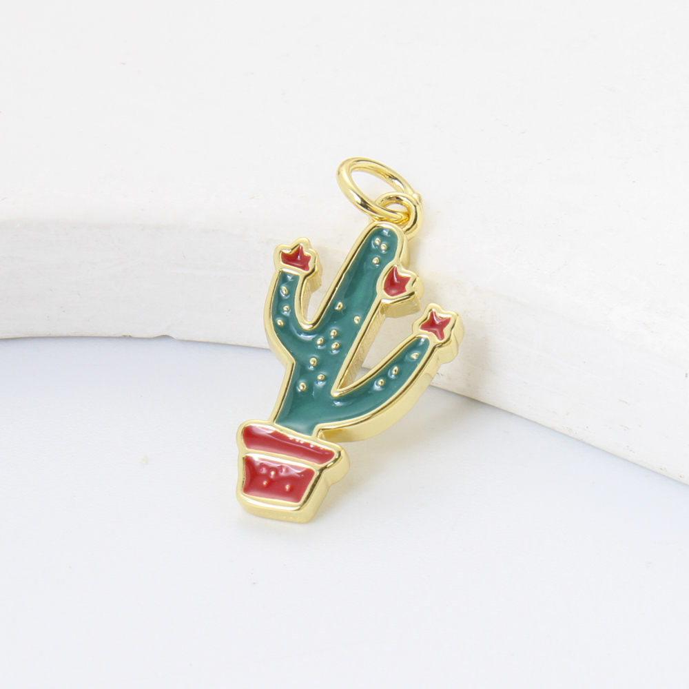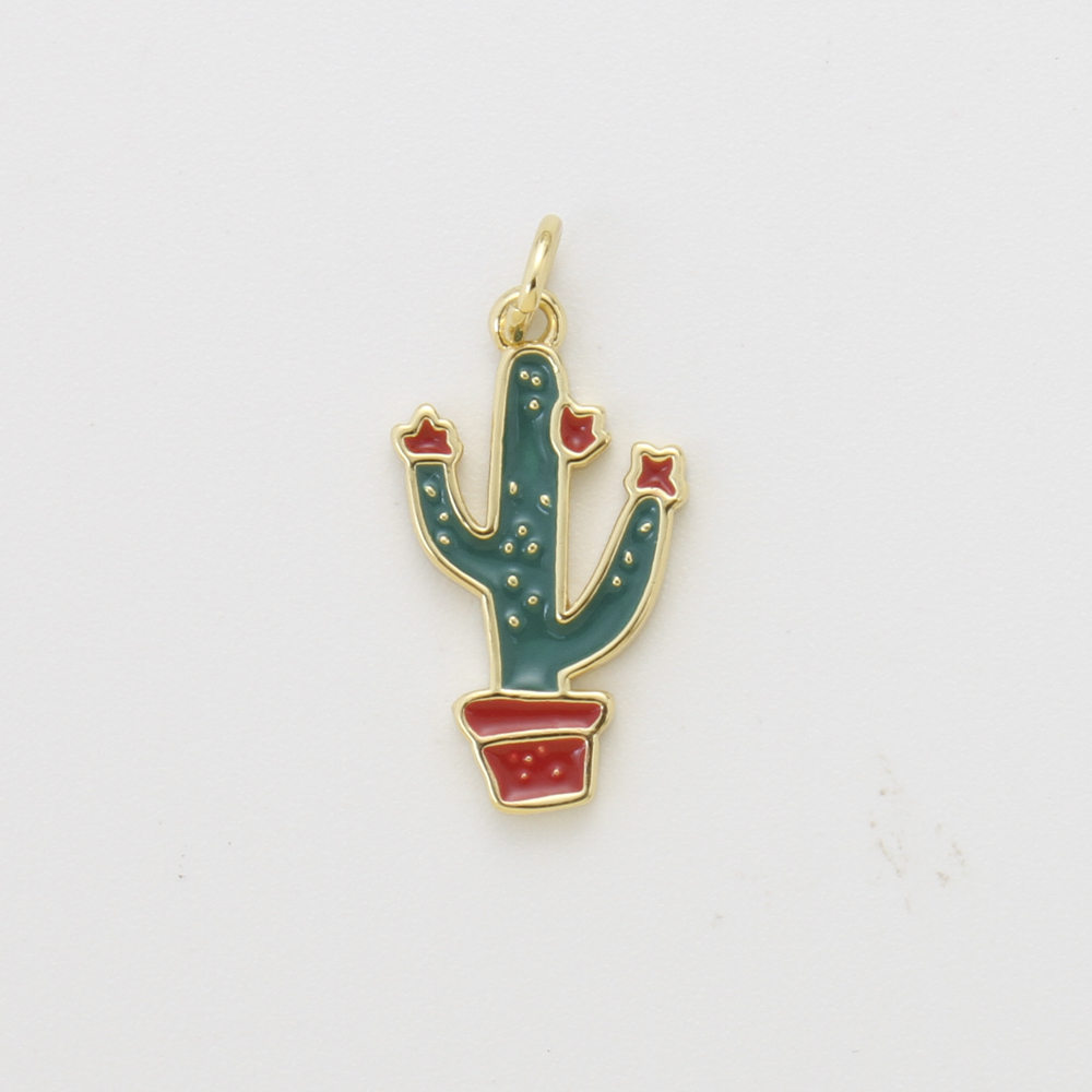 Bijoux pendentifs en laiton, Opuntia Stricta, Placage, DIY & émail, plus de couleurs à choisir, protéger l'environnement, sans nickel, plomb et cadmium, 17.40x11x1.80mm, Vendu par PC