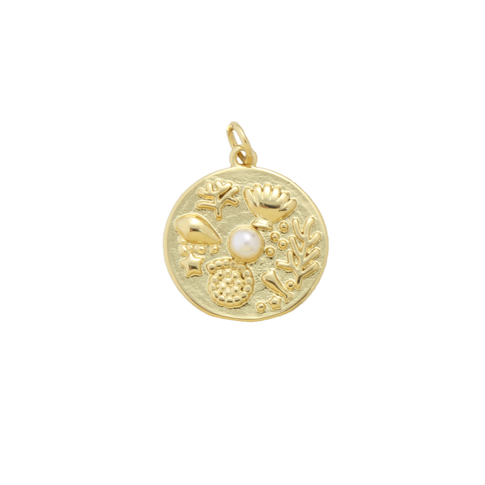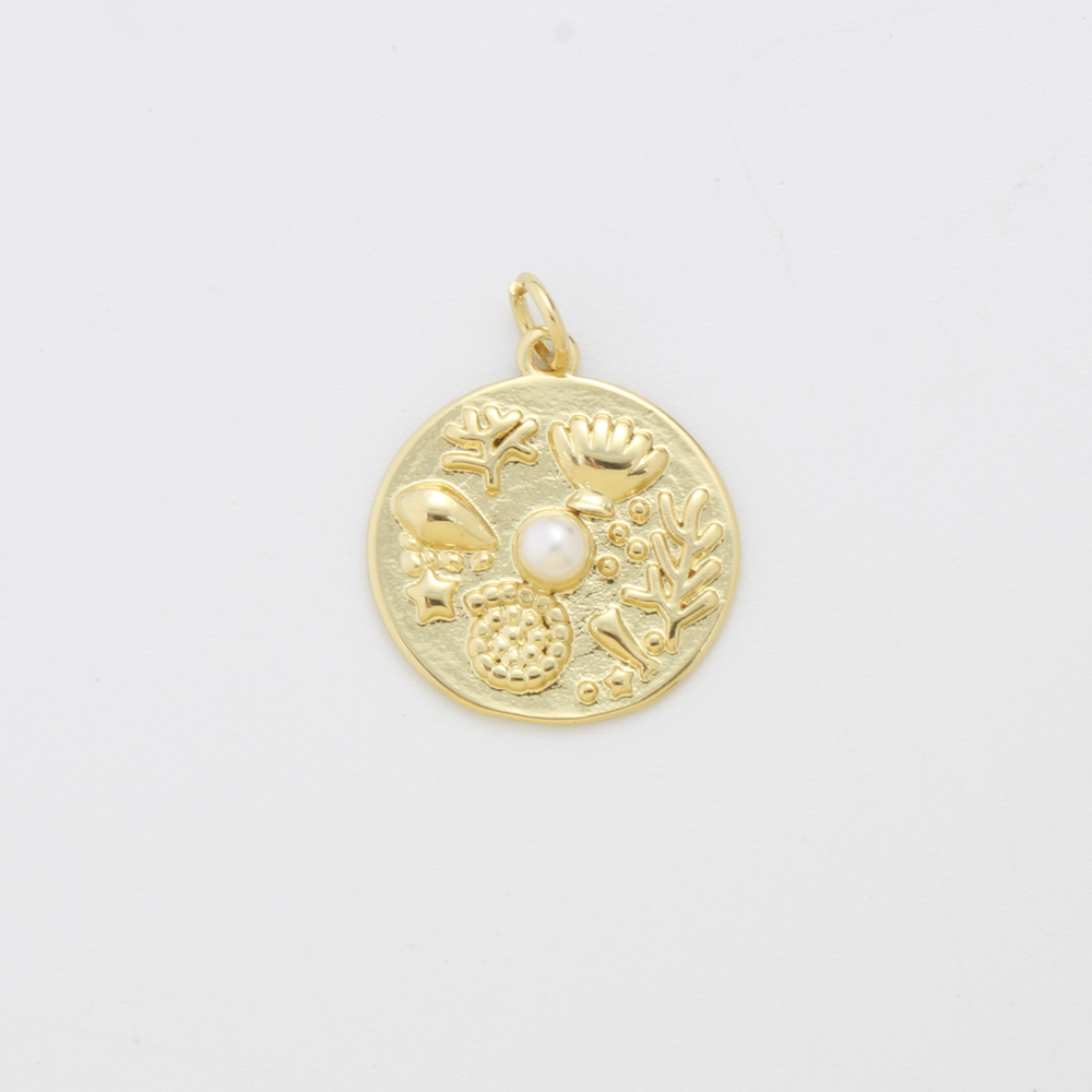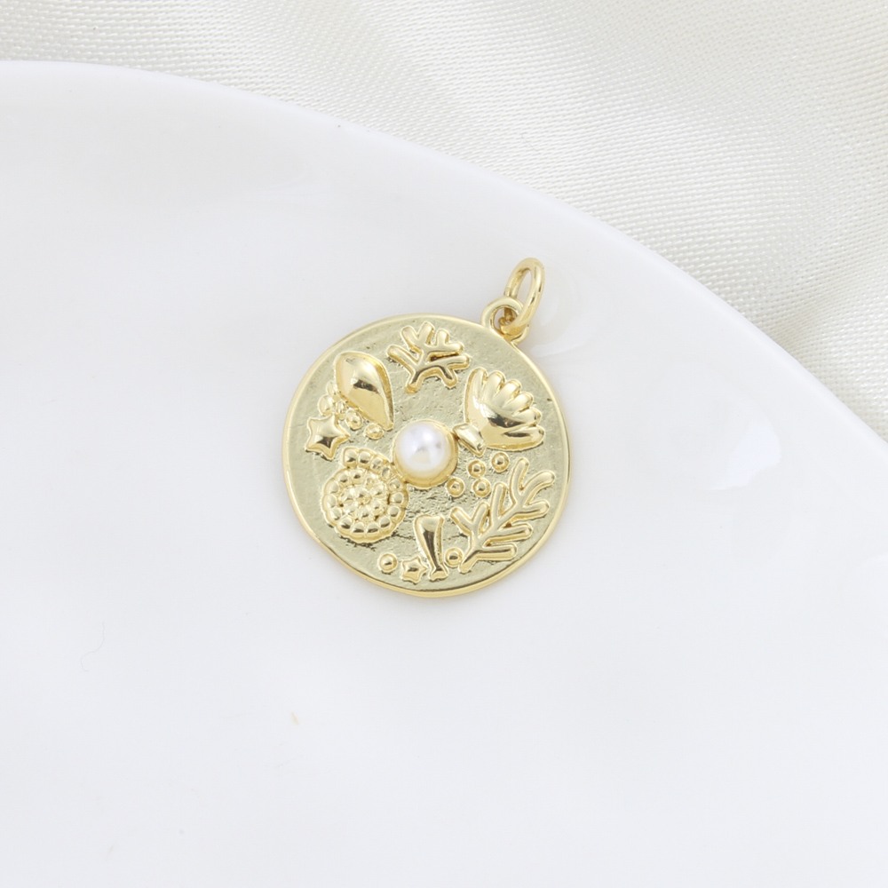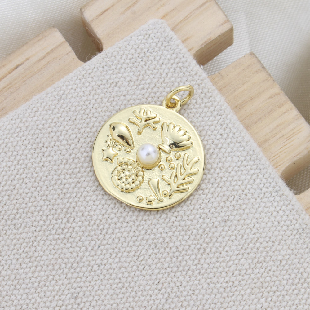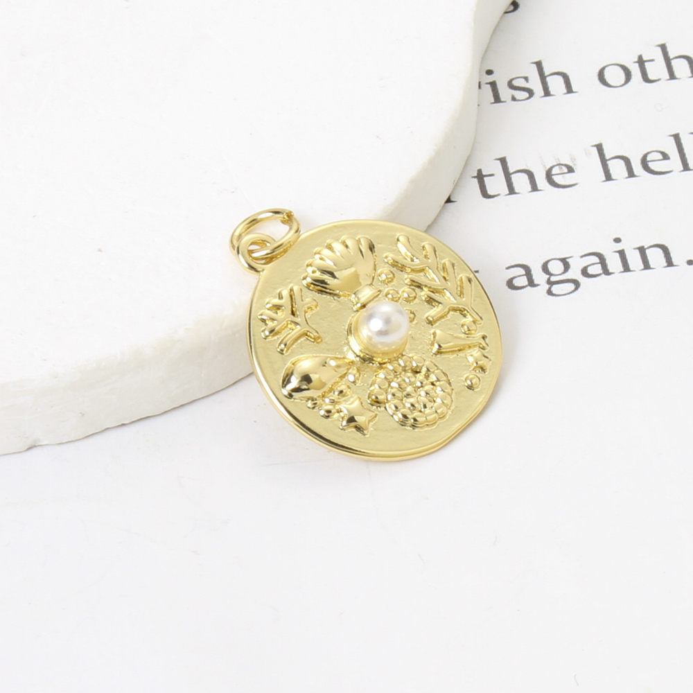 Bijoux pendentifs en laiton, avec perle de plastique, Rond, Placage, DIY, doré, protéger l'environnement, sans nickel, plomb et cadmium, 19.80x18.50x4.20mm, Vendu par PC