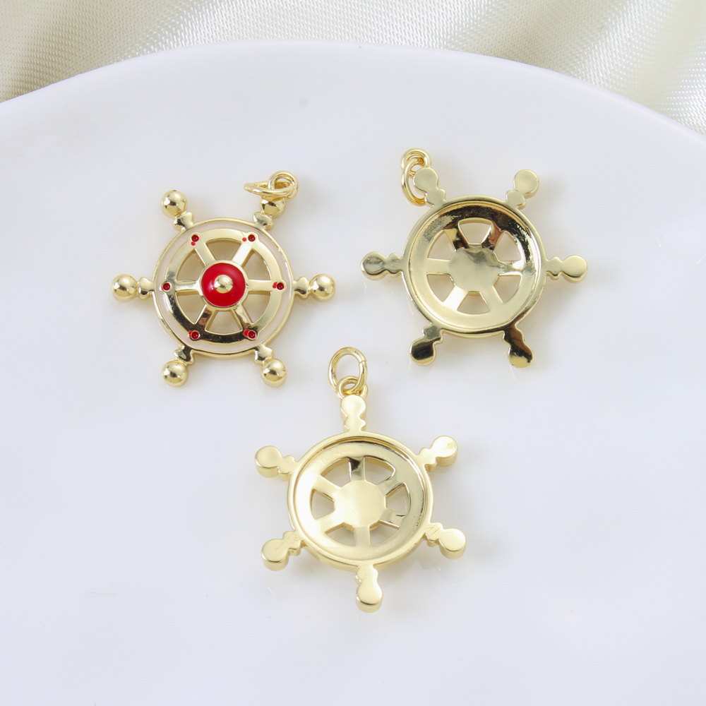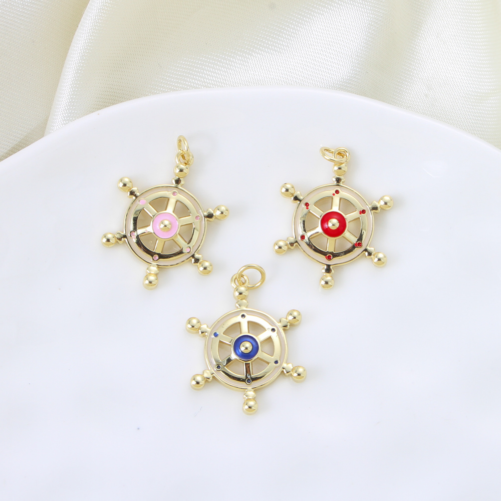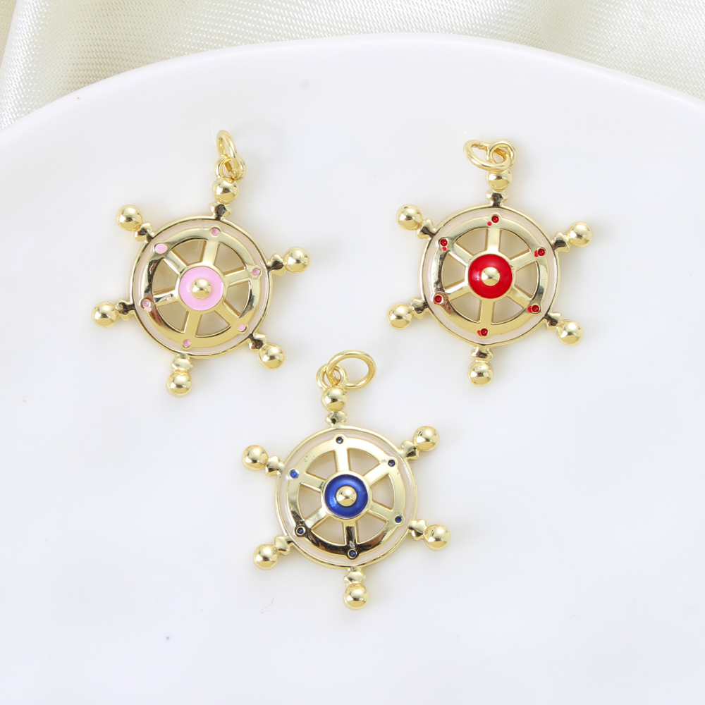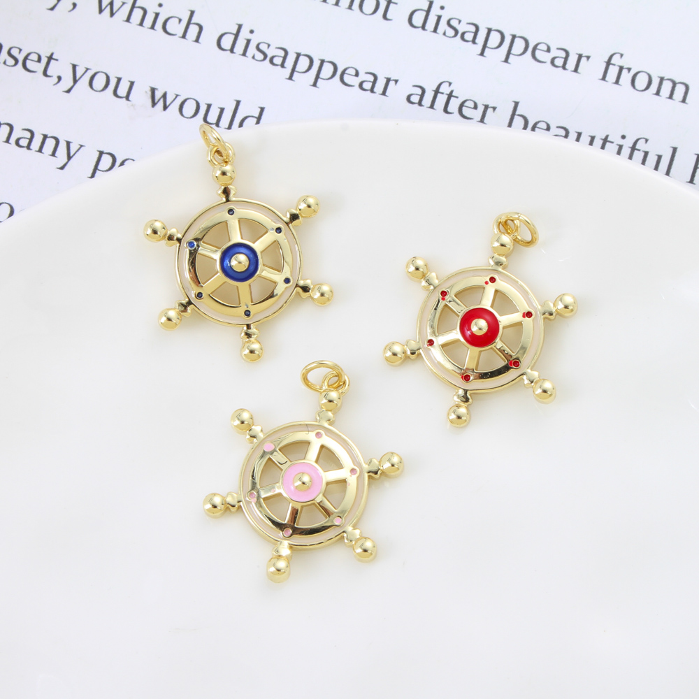 Bijoux pendentifs en laiton, roue de bateau, Placage, DIY & émail, plus de couleurs à choisir, 24.50x19.60x3.40mm, Vendu par PC