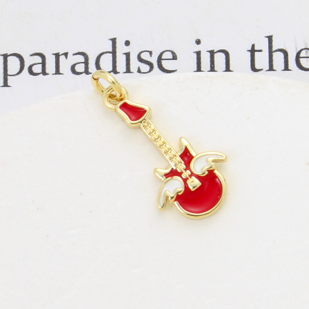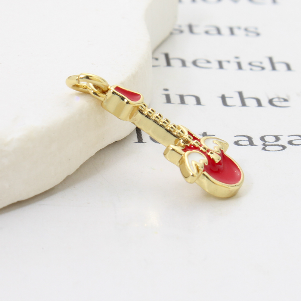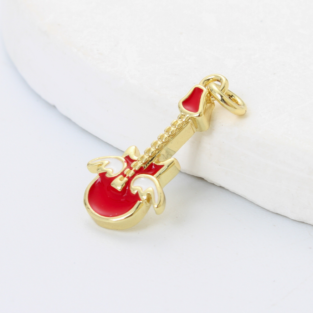 Bijoux pendentifs en laiton, guitare, Placage, DIY & émail, plus de couleurs à choisir, 17x8.90x2.10mm, Vendu par PC