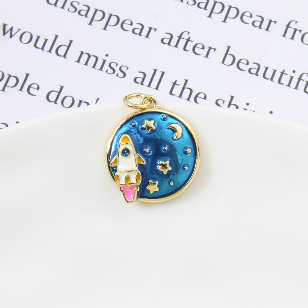 Bijoux pendentifs en laiton, Rond, Placage, DIY & émail, plus de couleurs à choisir, protéger l'environnement, sans nickel, plomb et cadmium, 18.60x16.40x3.80mm, Vendu par PC