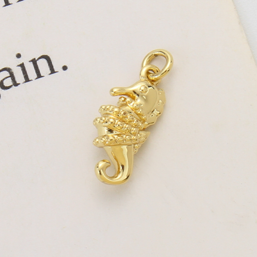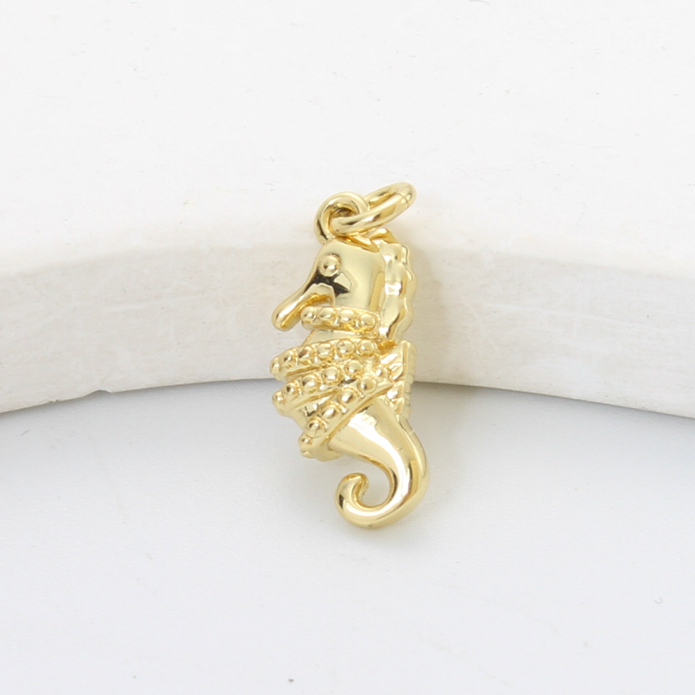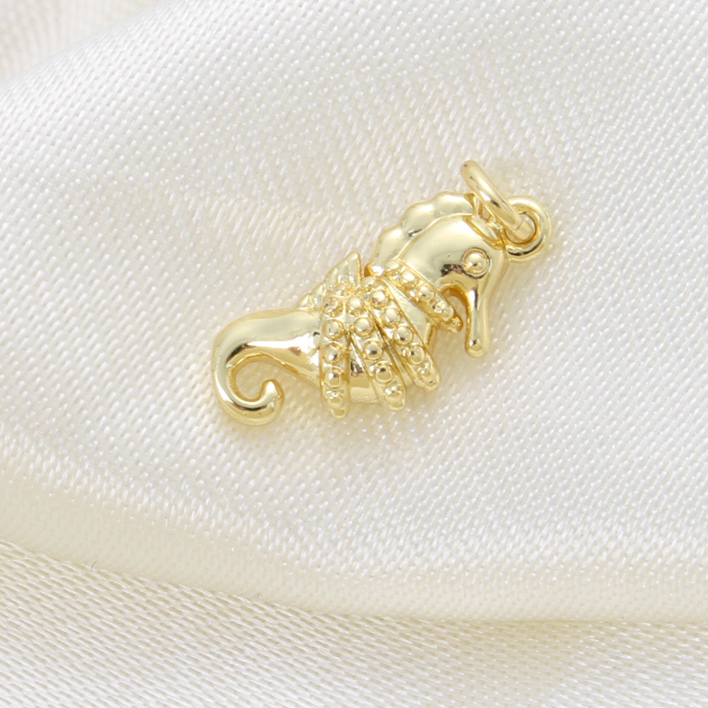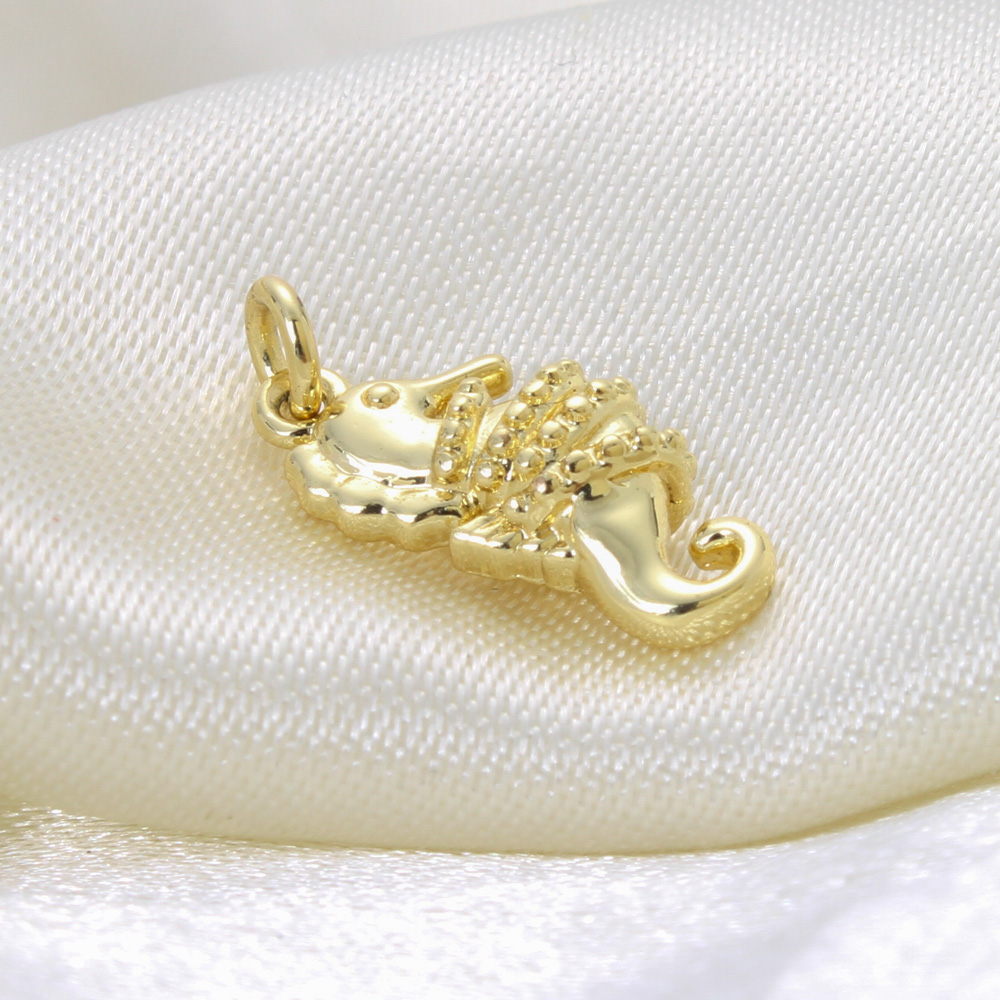 Bijoux pendentifs en laiton, hippocampe, Placage, DIY, doré, protéger l'environnement, sans nickel, plomb et cadmium, 15x6.70x4.50mm, Vendu par PC