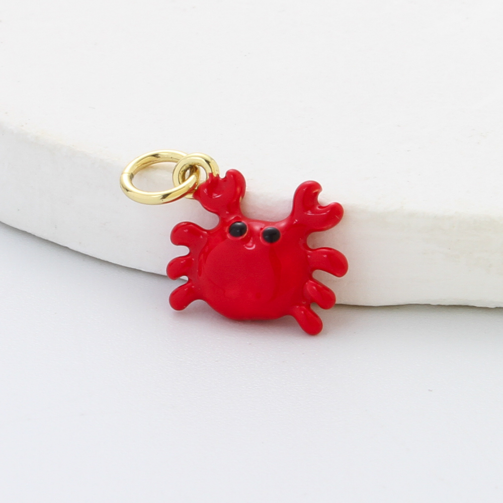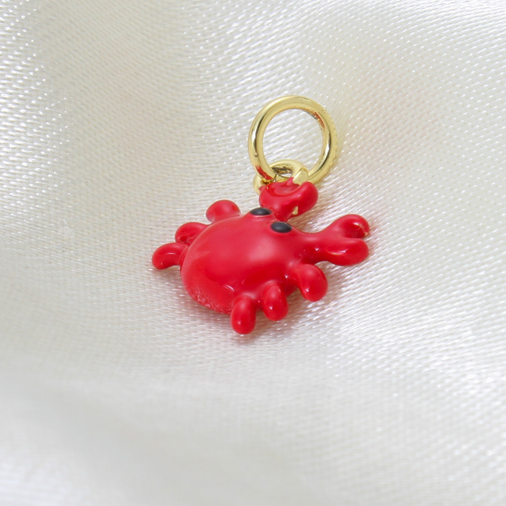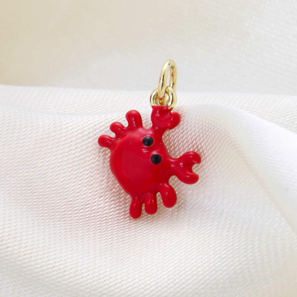 Bijoux pendentifs en laiton, crabe, Placage, DIY & émail, rouge, protéger l'environnement, sans nickel, plomb et cadmium, 10x12.40x3.40mm, Vendu par PC