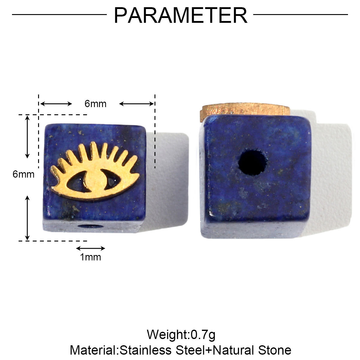 Billes en acier inoxydable, Acier inoxydable 304, avec Lapis lazuli, Placage de couleur d'or, DIY & émail, plus de couleurs à choisir, 3PC/sac, Vendu par sac