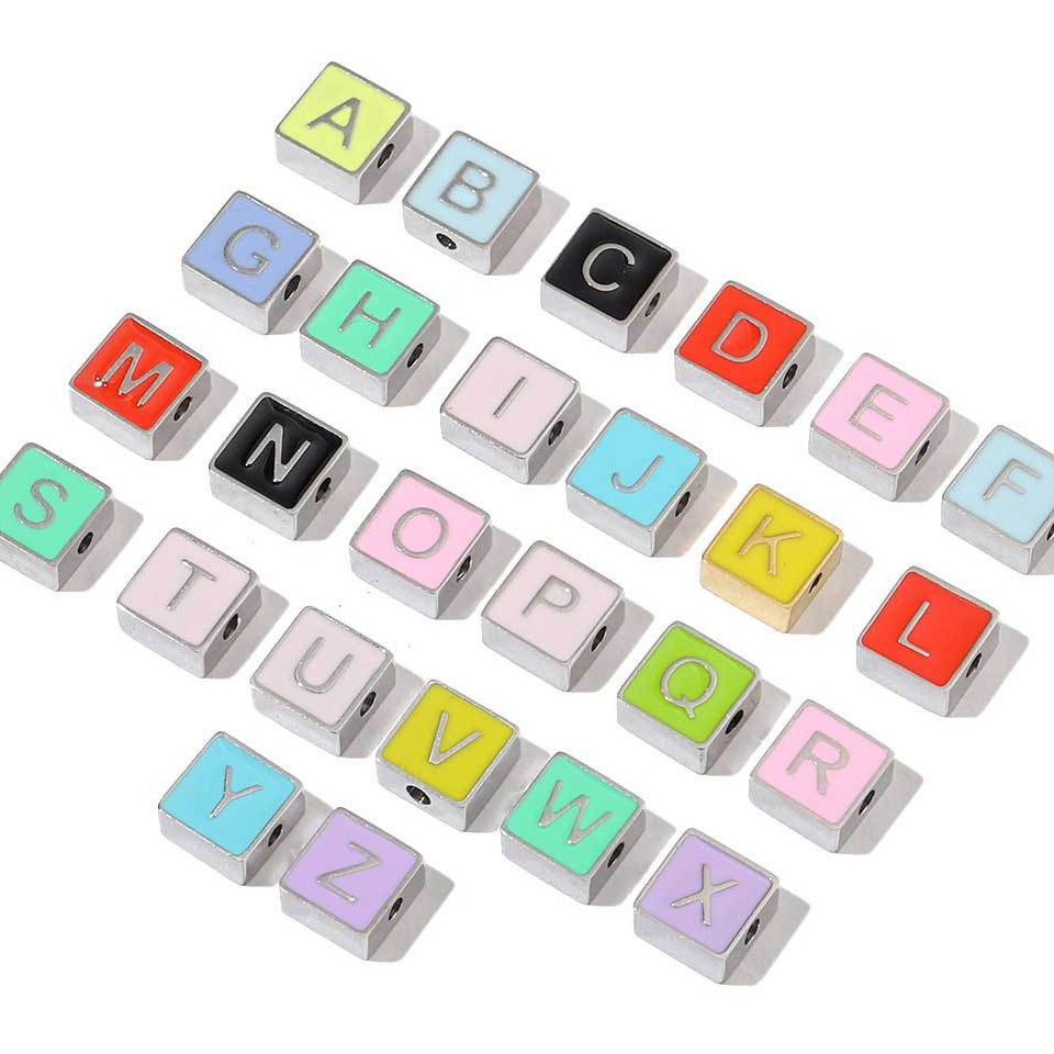 Billes en acier inoxydable, Acier inoxydable 304, Lettre d’alphabet, Placage de couleur d'or, DIY & émail, plus de couleurs à choisir, 26PC/fixé, Vendu par fixé