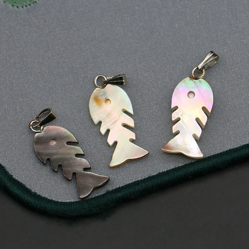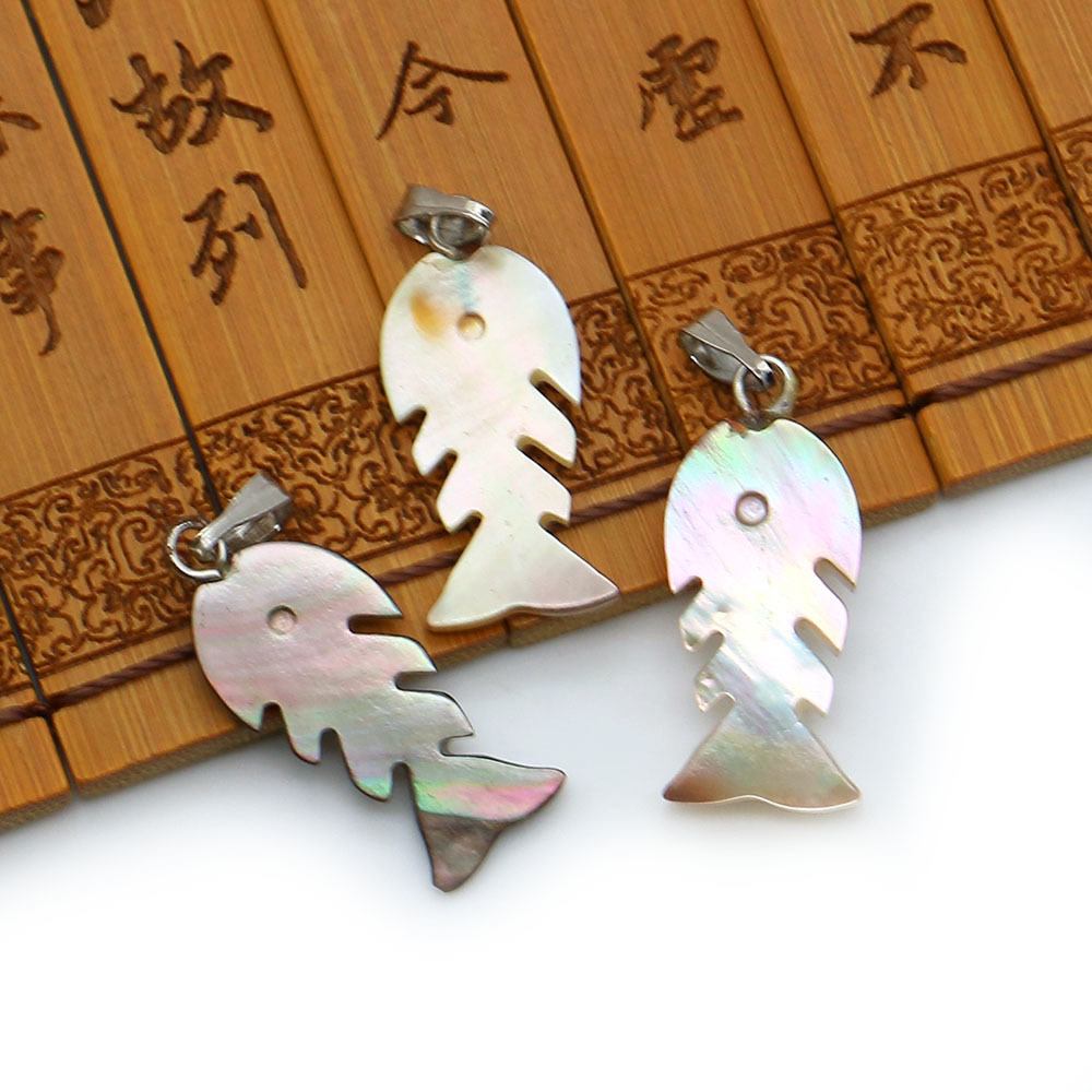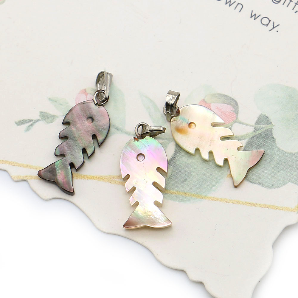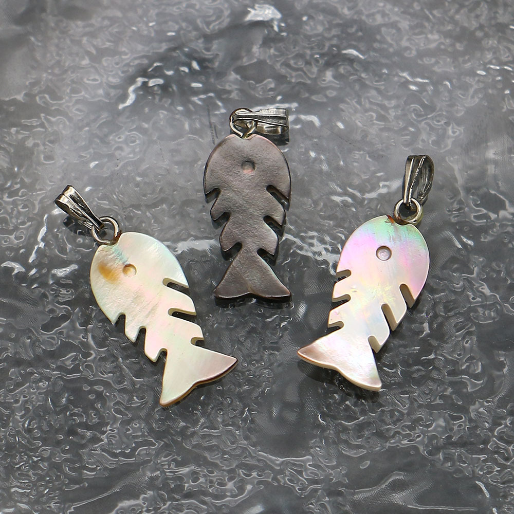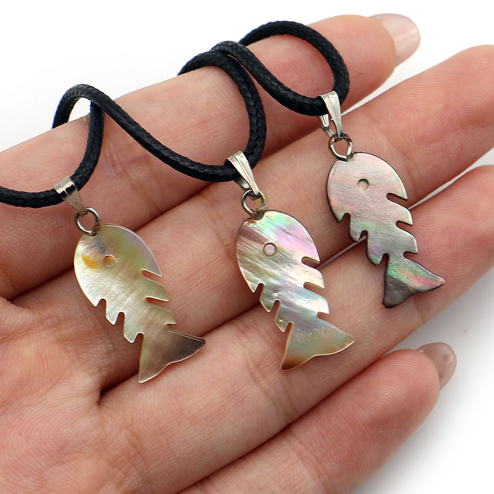 Black-Lip-Shell Pendentif, avec corde de cire & fer, Squelette de poisson, DIY, couleurs mélangées, 10x23mm, Vendu par PC