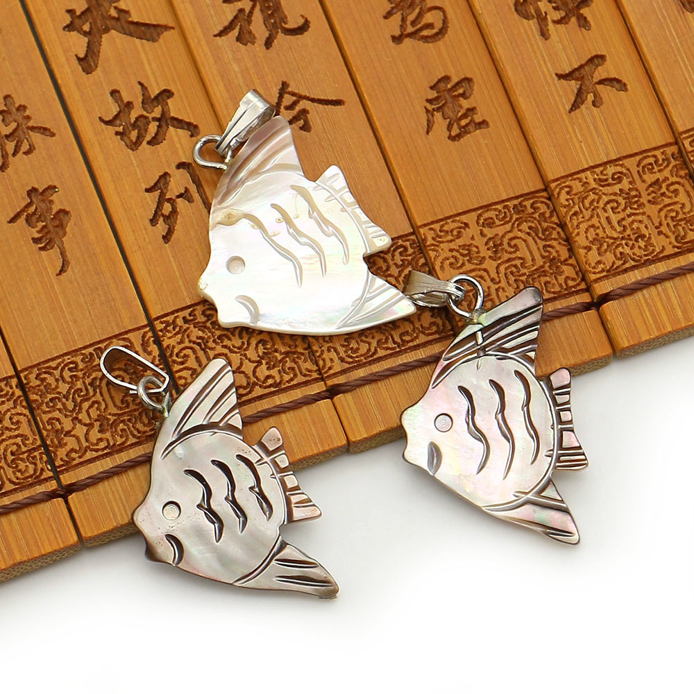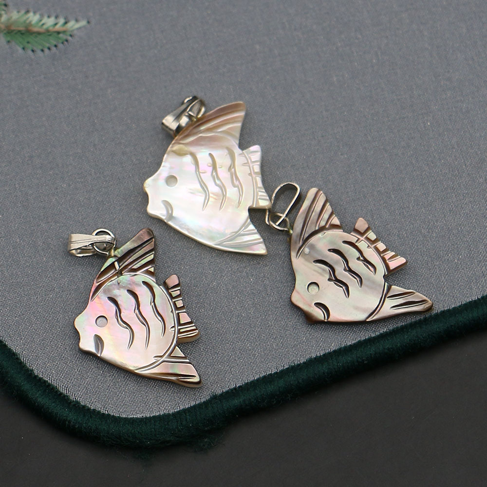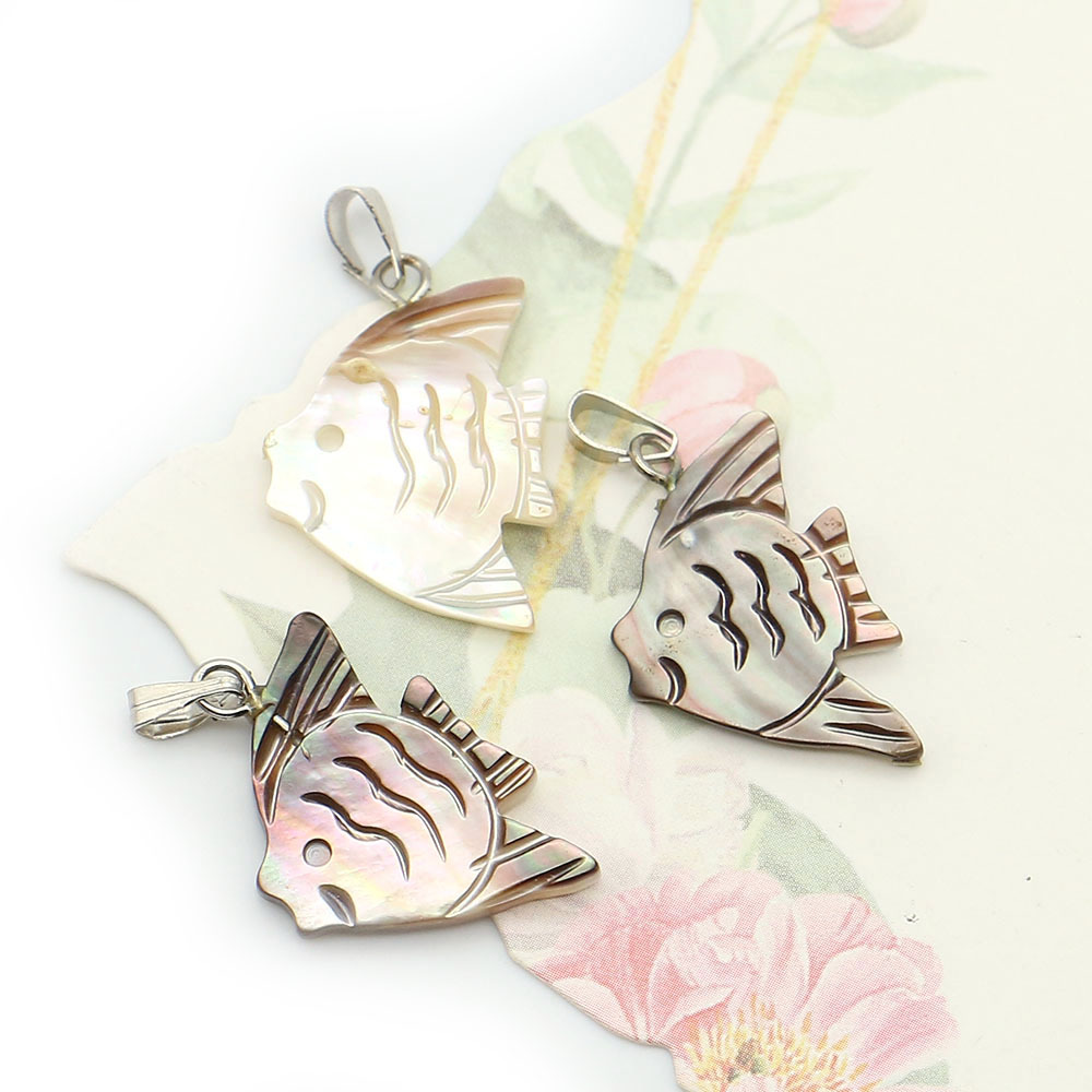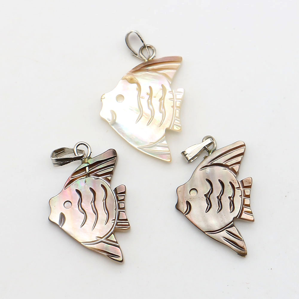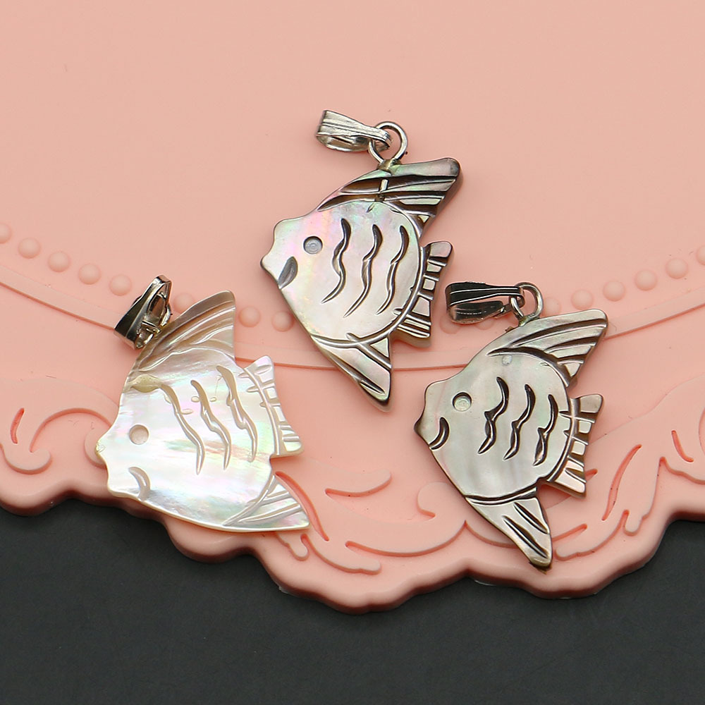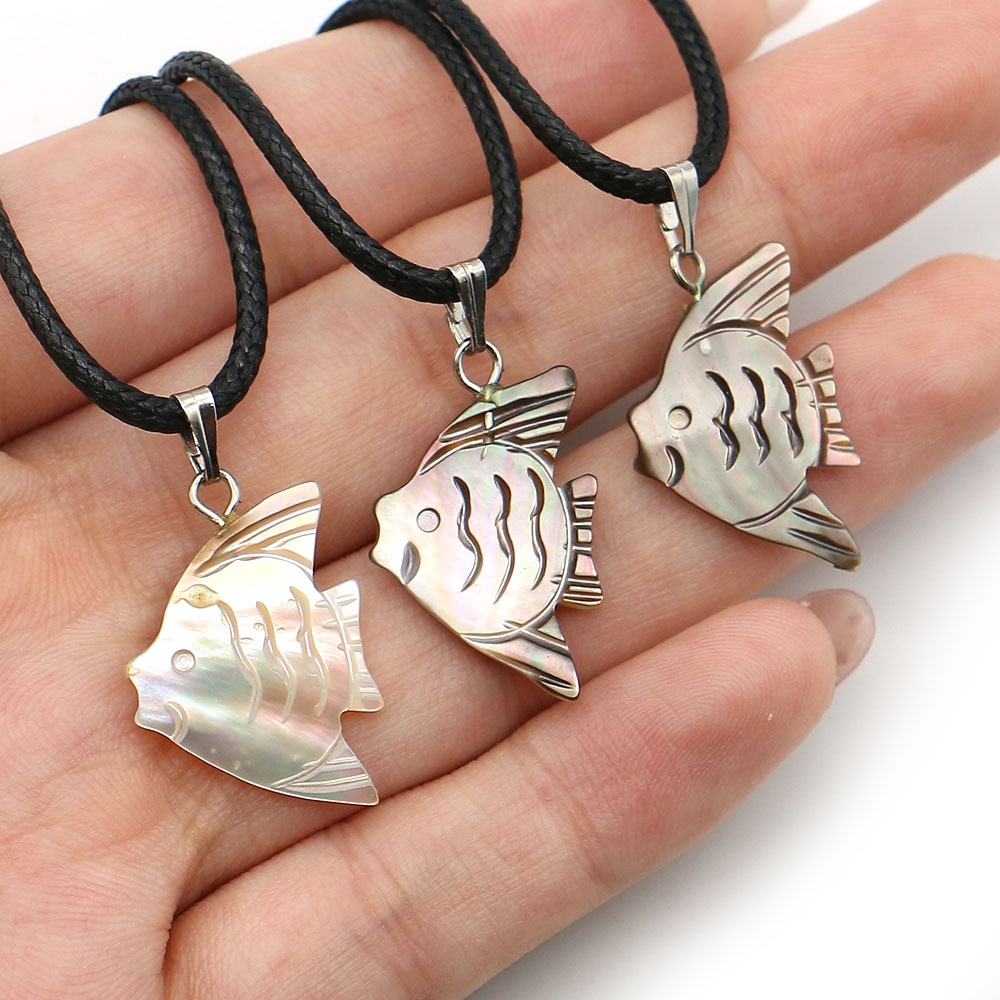 Black-Lip-Shell Pendentif, avec corde de cire & fer, poisson, DIY, couleurs mélangées, 16x23mm, Vendu par PC