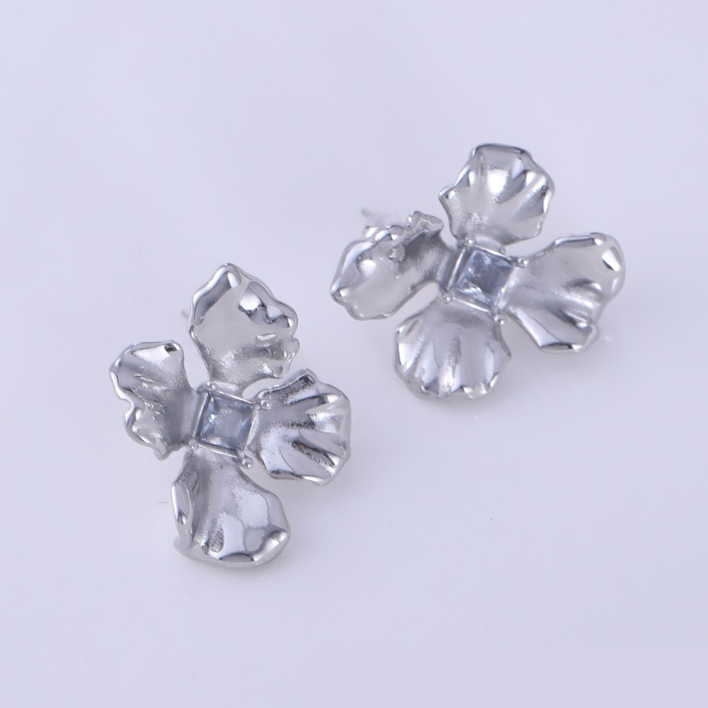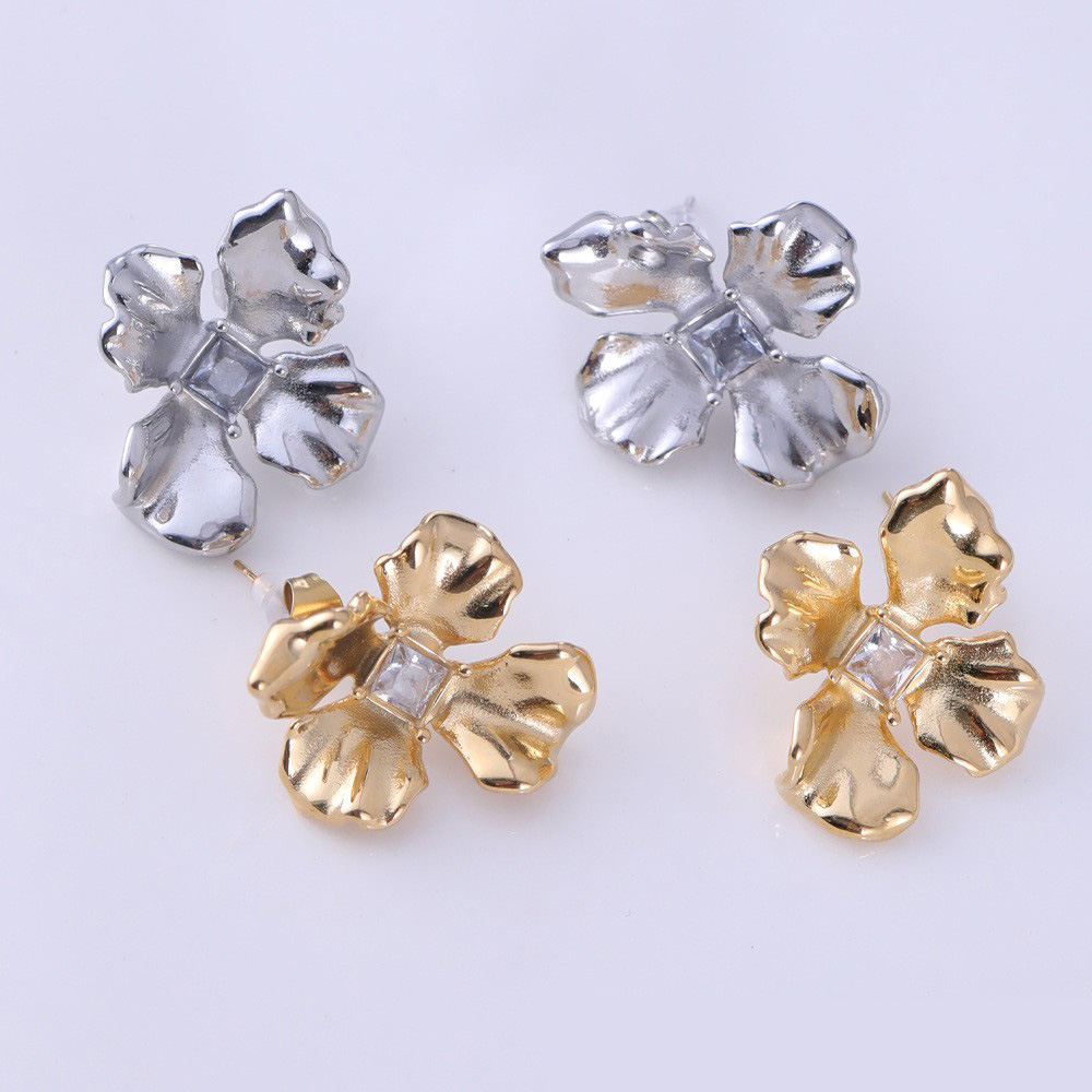 Boucle d'oreille de gaujon en acier inoxydable, Acier inoxydable 304, fleur, Placage, bijoux de mode & pour femme, doré, Vendu par paire