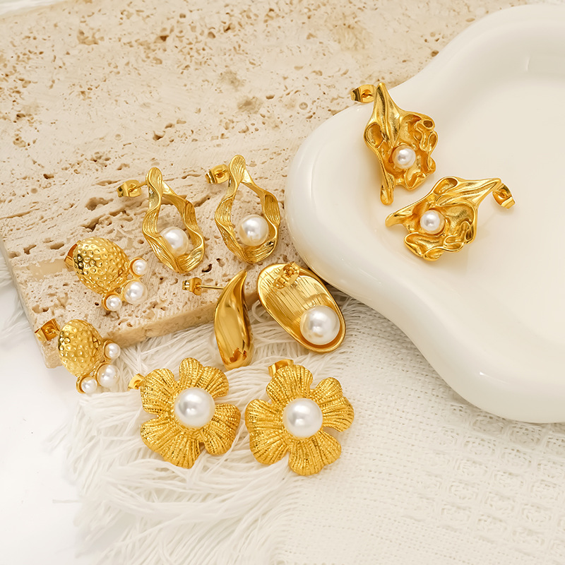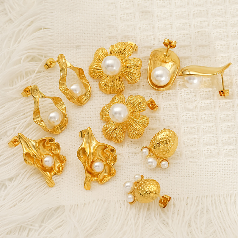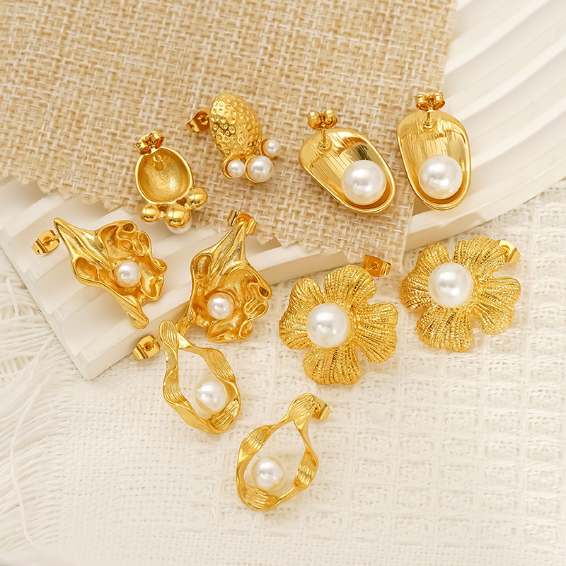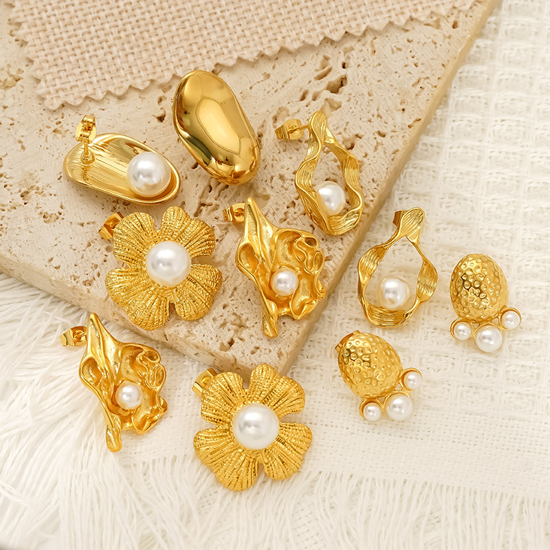 Boucle d'oreille de gaujon en acier inoxydable, Acier inoxydable 304, Plaqué or 18K, styles différents pour le choix & pour femme & creux, Vendu par paire