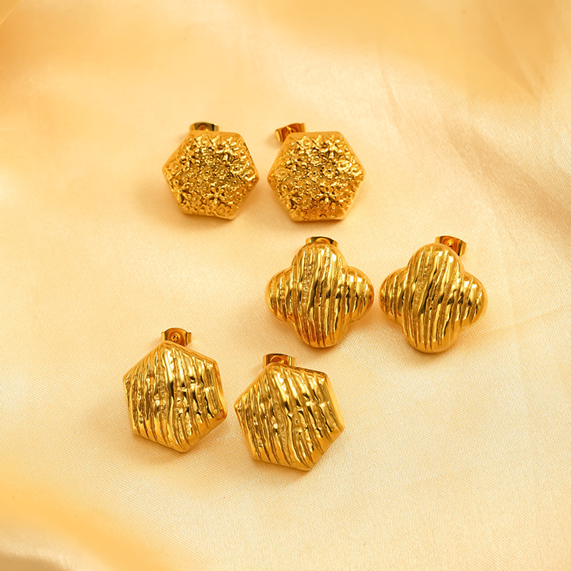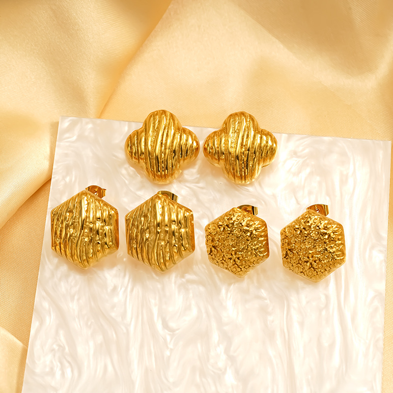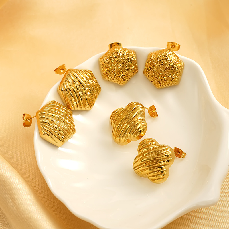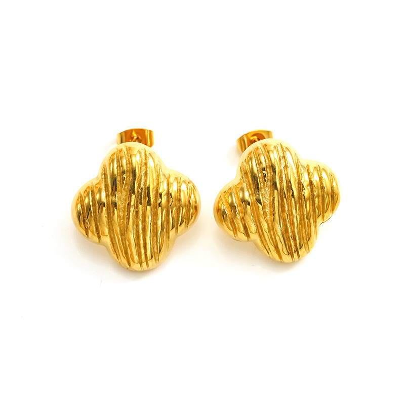 Boucle d'oreille de gaujon en acier inoxydable, Acier inoxydable 304, fleur, Placage, bijoux de mode & pour femme, doré, Vendu par paire