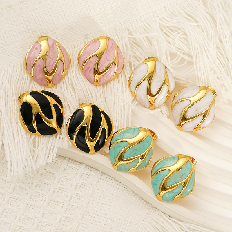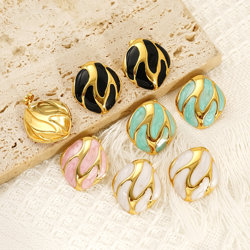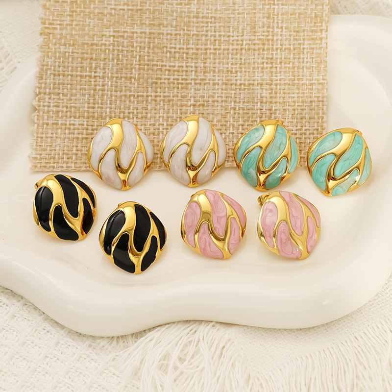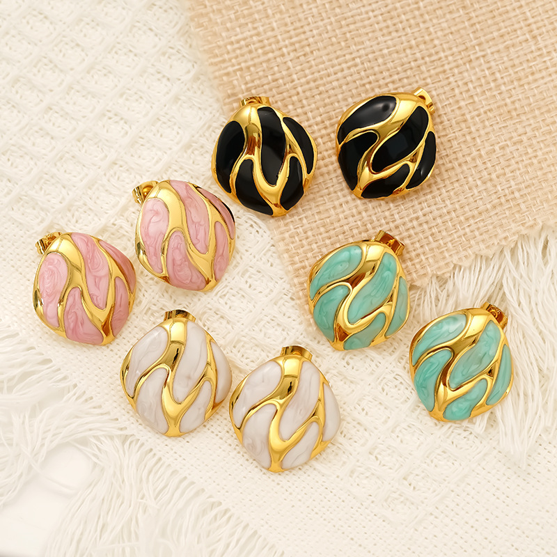 Boucle d'oreille de gaujon en acier inoxydable, Acier inoxydable 304, Plaqué or 18K, bijoux de mode & pour femme & émail, plus de couleurs à choisir, Vendu par paire