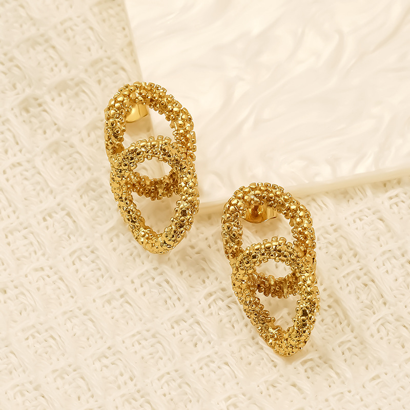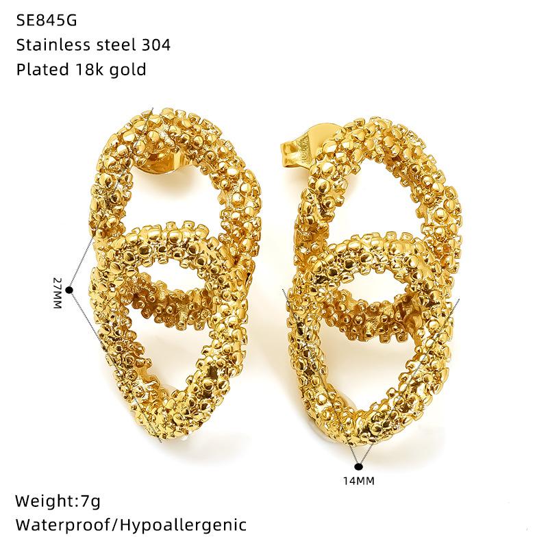 Boucle d'oreille de gaujon en acier inoxydable, Acier inoxydable 304, Plaqué or 18K, bijoux de mode & pour femme & creux, Vendu par paire