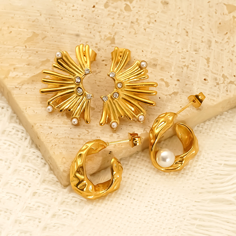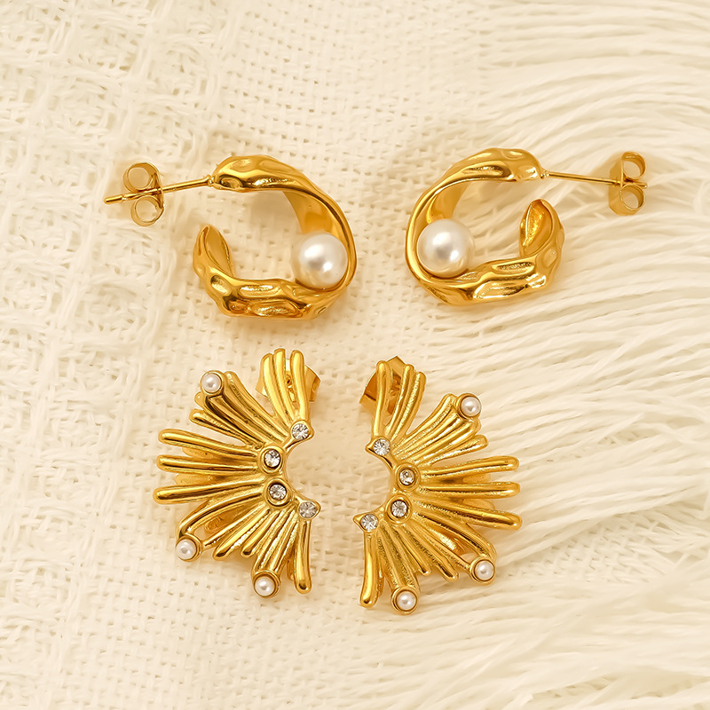 Boucle d'oreille de gaujon en acier inoxydable, Acier inoxydable 304, avec strass & perle de plastique, Plaqué or 18K, bijoux de mode & styles différents pour le choix & pour femme, Vendu par paire